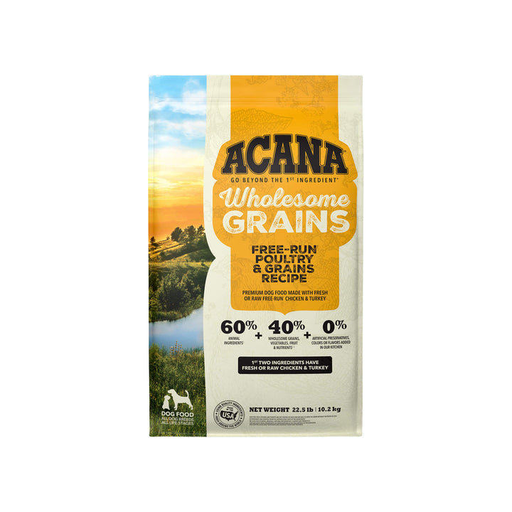 Feed with confidence using ACANA Wholesome Grains Dry Food For Dogs—grain-inclusive premium nutrition your dog can thrive on.