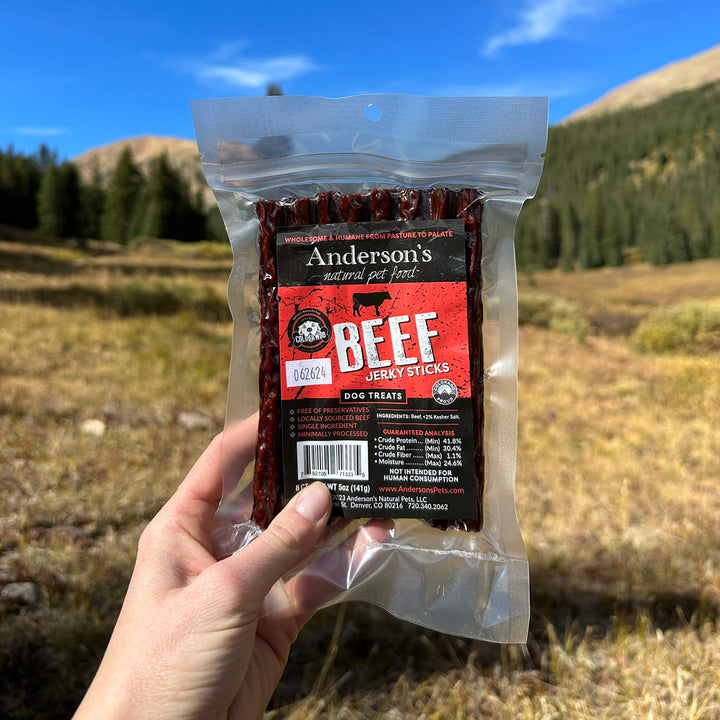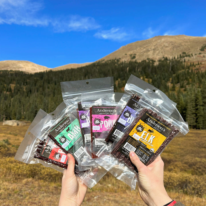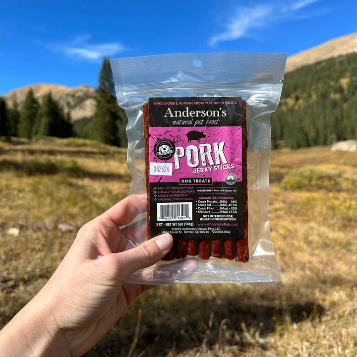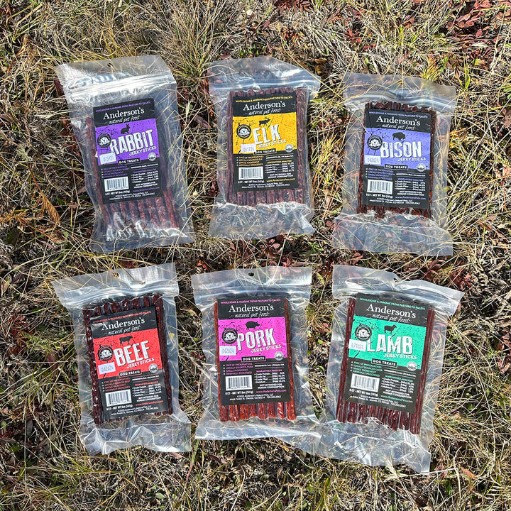 Treat your pup to Anderson's Jerky Sticks for Dogs—pure, simple single ingredient dog treats made with care. Give them something to wag about today!