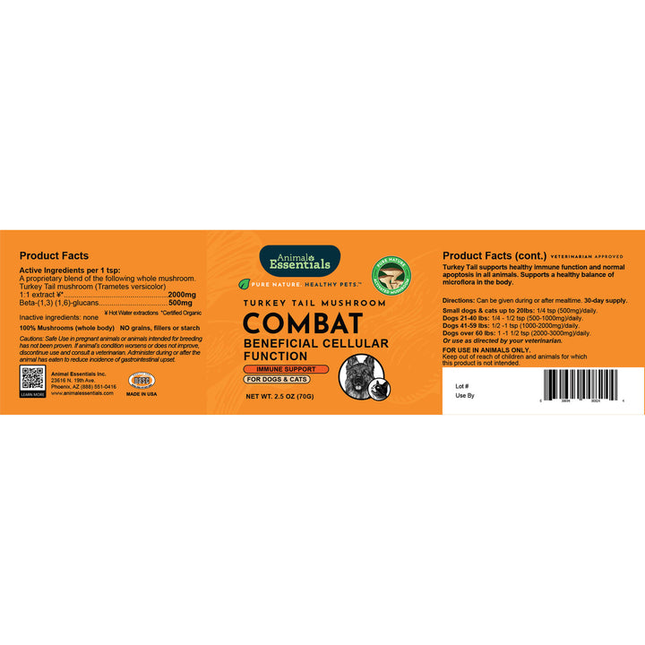 Boost your pet’s natural defenses with Animal Essentials COMBAT Powder, made with immune-supporting turkey tail mushroom for cats & dogs and nothing unnecessary