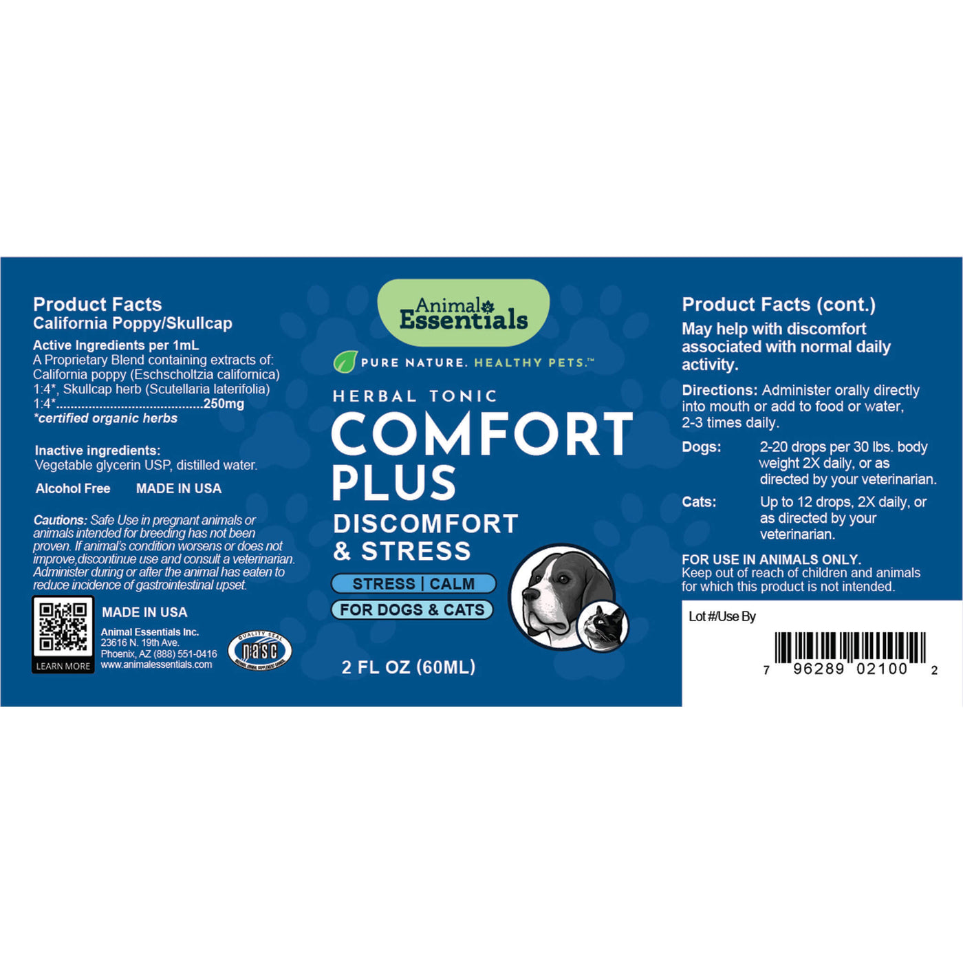 Animal Essentials Herbal Comfort Plus is alcohol-free, safe for both dogs and cats, and easy to administer. Whether your pet needs extra comfort during stressful events or support for physical ease, this blend delivers targeted, natural relief.