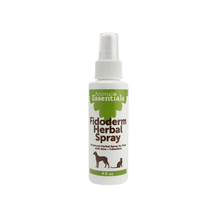 Each bottle contains 4 fl oz of Animal Essentials Fidoderm Herbal Spray. Made with sustainable ingredients, including organic aloe vera, calendula, and oils of tea tree, lavender, and carrot seed.