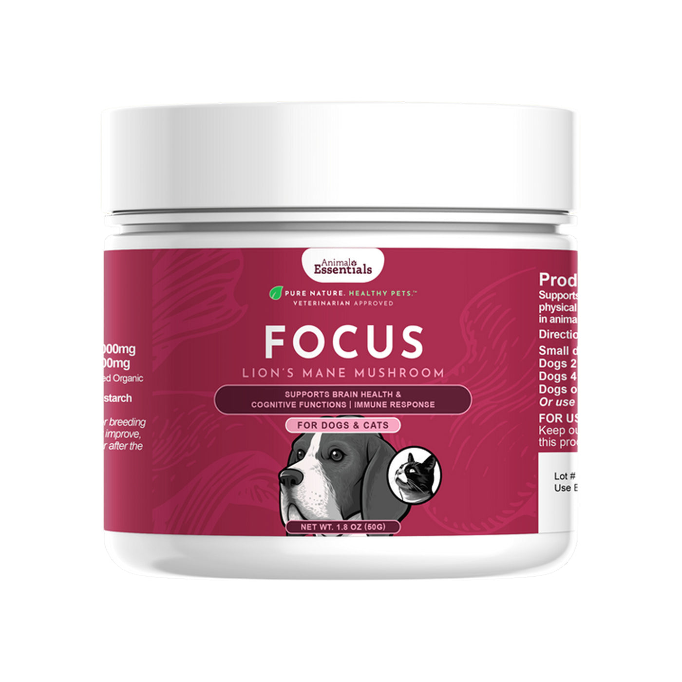 Benefits of Animal Essentials FOCUS Lion's Mane Mushroom Powder for Dogs & Cats