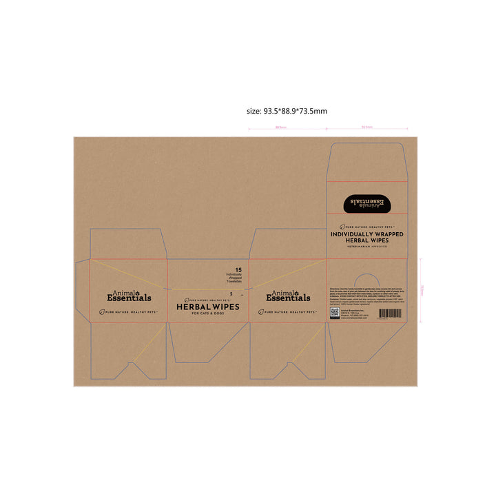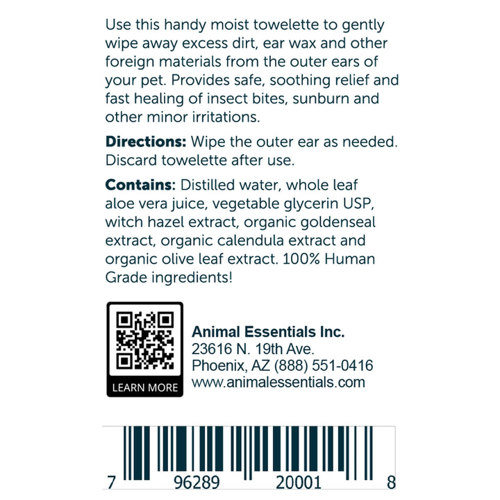 Animal Essentials Herbal Ear Wipes provide a quick and easy way to wipe away excess earwax, dirt, and debris from your pet’s ears, paws, and skin. These convenient, individually packaged towelettes are perfect for on-the-go use, fitting easily into your purse, glovebox, or backpack.