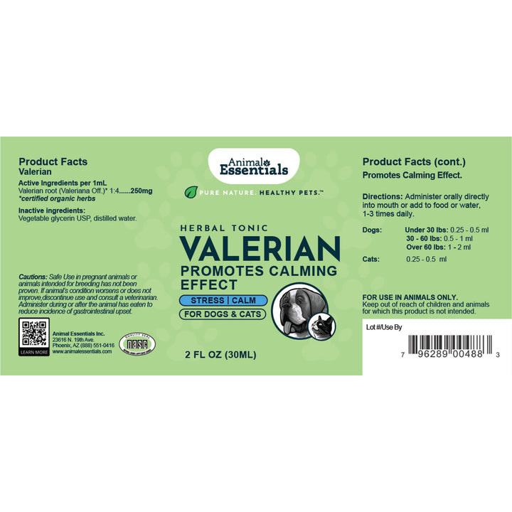 Support peace of mind with Animal Essentials Valerian Tonic—a trusted herbal option made with soothing valerian root for dogs & cats.