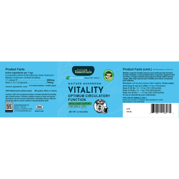Support your pet's vitality with Animal Essentials VITALITY Powder—a convenient natural maitake mushroom supplement for dogs & cats made for everyday wellness.