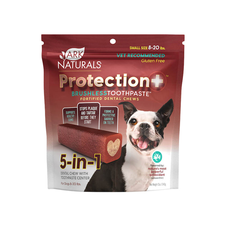 Support your dog’s dental health with Ark Naturals Protection+ Brushless Toothpaste, a first-of-its-kind dental chew formulated with Astaxanthin. This innovative recipe helps prevent plaque and tartar buildup before it starts, while the chewy toothpaste center polishes teeth and freshens breath. With added benefits for gum health and oral immunity, these medium-textured chews are ranked Medium on the DENTA-METER™, making them ideal for everyday chewers. Crafted in the USA with no artificial flavors or colors, they provide a safe and effective way to maintain your dog’s oral hygiene. Check out more Ark Naturals Dental Products to find the perfect fit for your dog's oral health needs.