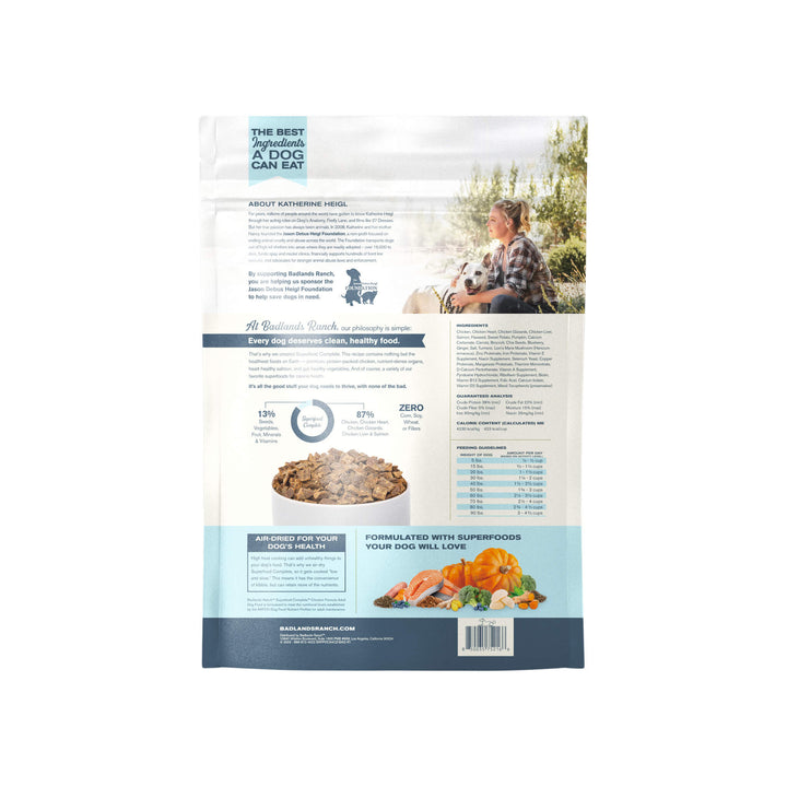Crafted without corn, soy, wheat, or artificial preservatives, Badlands Ranch Superfood Complete Air Dried Dog Food includes high‑quality meats, organ ingredients, fruits, vegetables, and seeds to promote strong muscles, digestive health, and steady energy. This Badlands Ranch dog food provides a protein‑rich meal with natural antioxidants and beneficial fats to help dogs thrive.