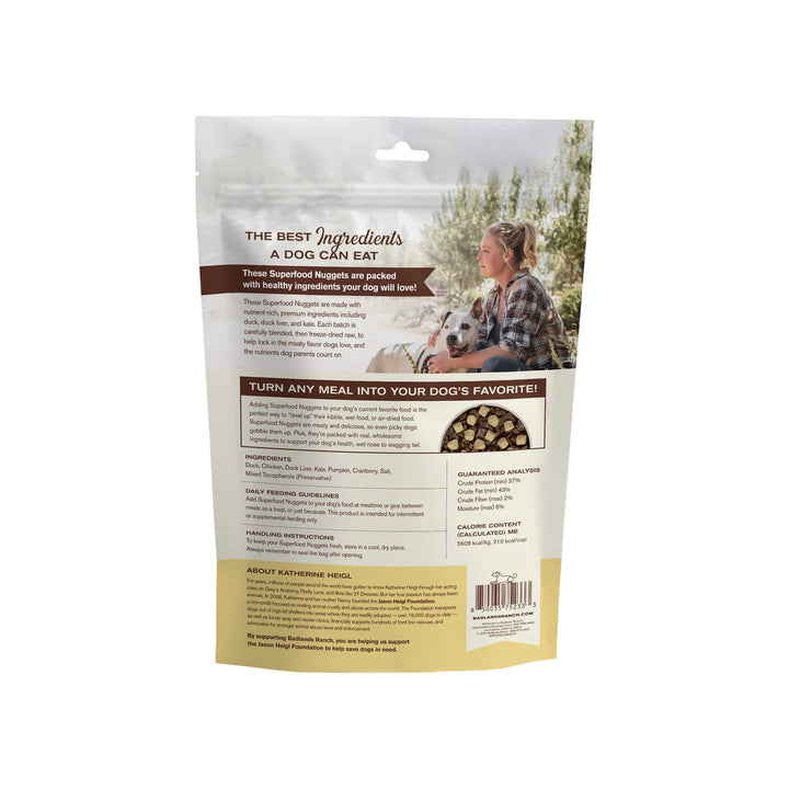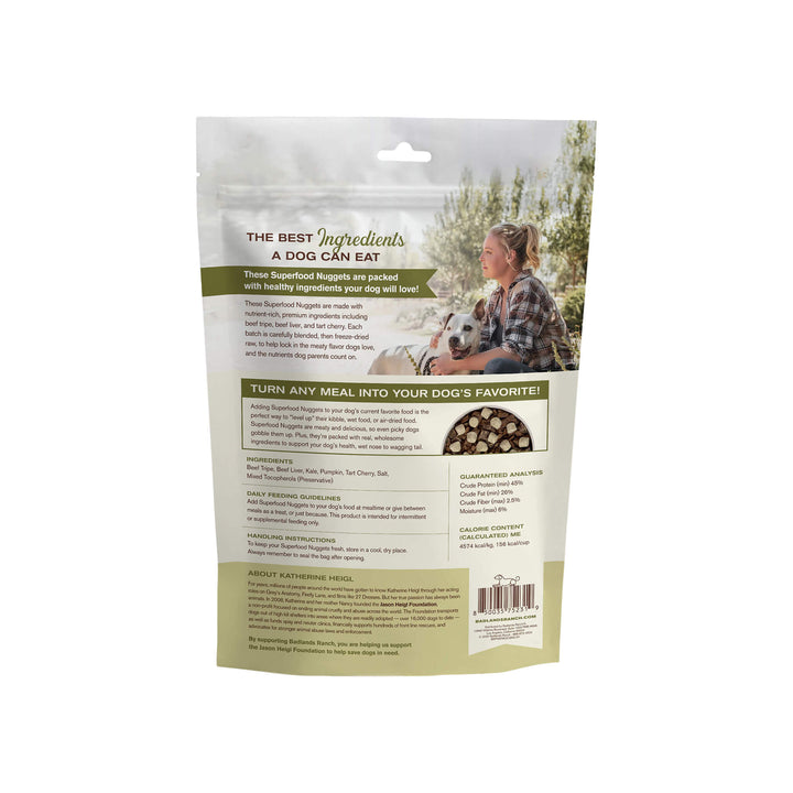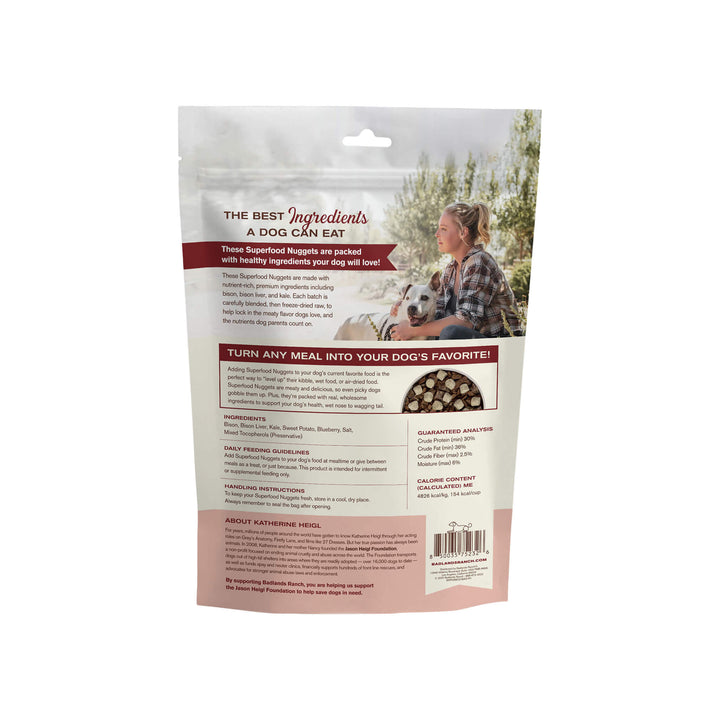 Badlands Ranch Superfood Nuggets Dog Food Topper adds a powerful boost of flavor and nutrition to your dog’s meals. This freeze dried raw topper for dogs is crafted with high-quality proteins, functional superfood ingredients, and gentle freeze-drying to preserve nutrients—making it an easy way to enhance digestion, energy, and mealtime excitement. Elevate every bowl with Badlands Ranch Superfood Nuggets Dog Food Topper.