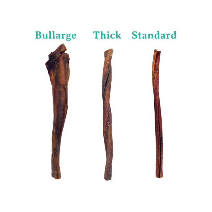 • Extra-Large Bully Stick: 10–12" long, ideal for power chewers.