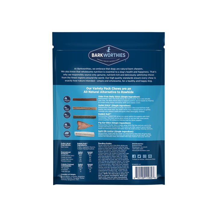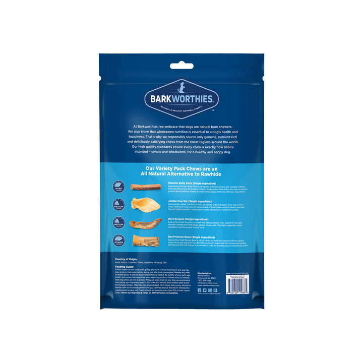 Barkworthies Dog Chews Variety Pack was formulated with your dog's diet in mind. Barkworthies knows that variety in their diet is the key to keeping them happy and healthy. The variety pack offers your dog the best products in a single package. These chews are made from the finest natural ingredients and are packed with essential nutrients.