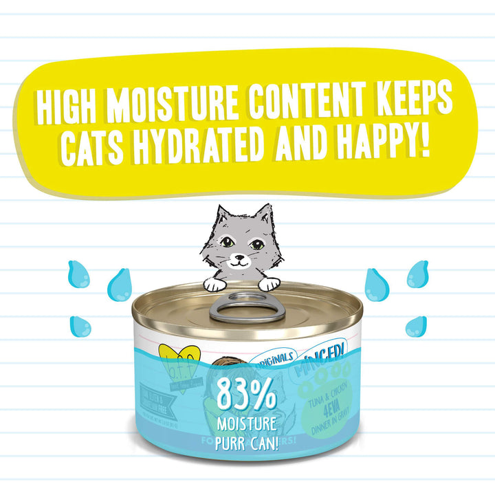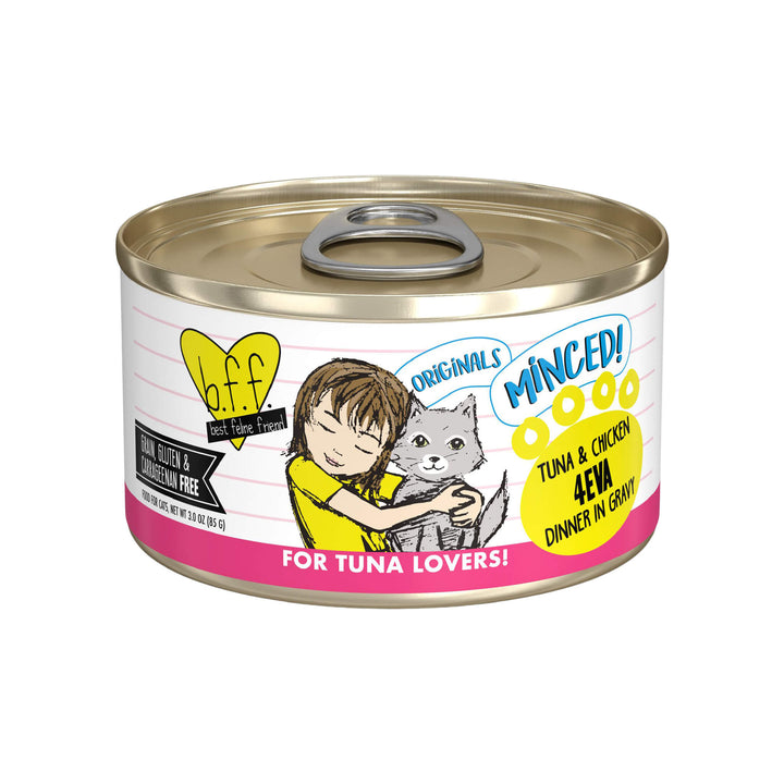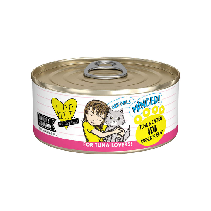 Best Feline Friend BFF cat food is made grain free in a human food facility. Each canned cat food is made using only "Fit for Human Consumption" muscle meat, which means they contain natural taste, texture, aroma, and appearance.