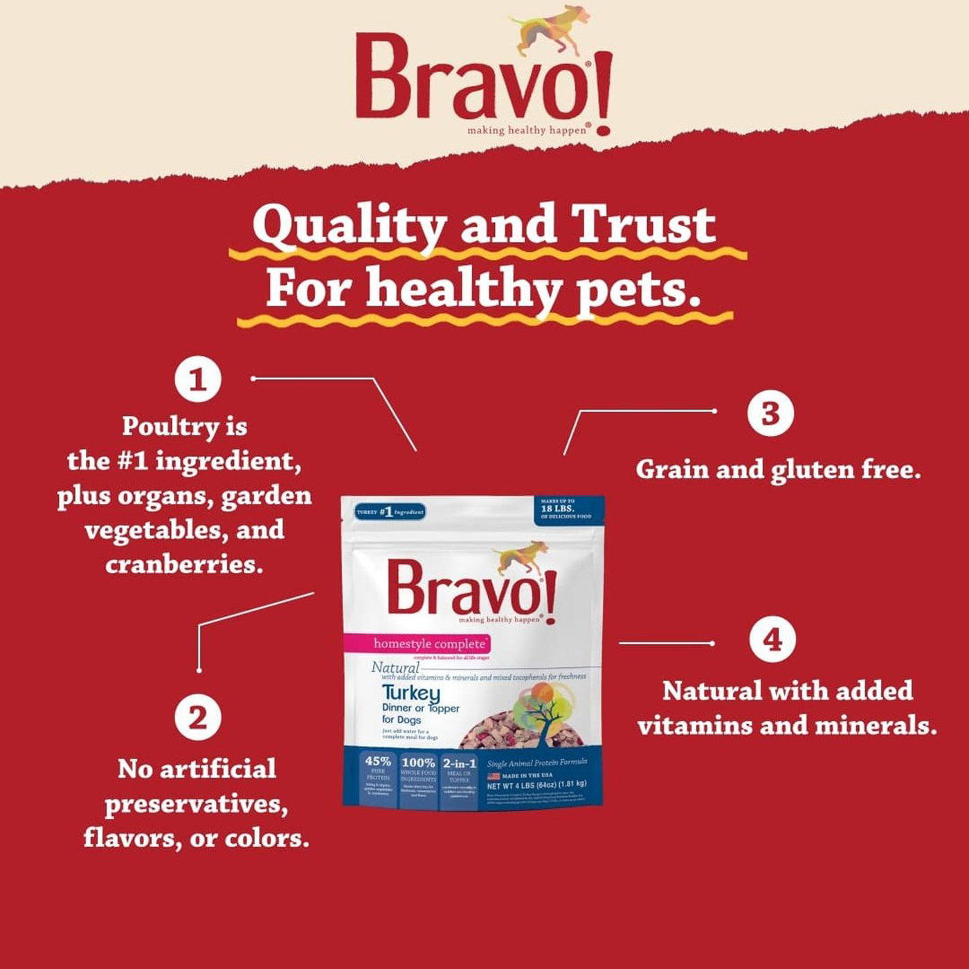 Serving a high-quality, homestyle meal with nutrient rich, raw ingredients is simple with Bravo! Homestyle Complete Freeze-Dried Dog Dinners.