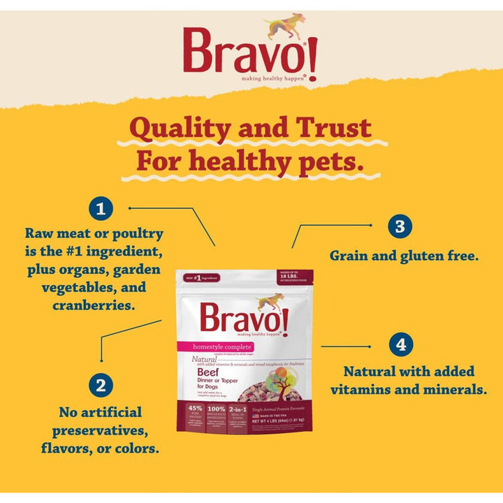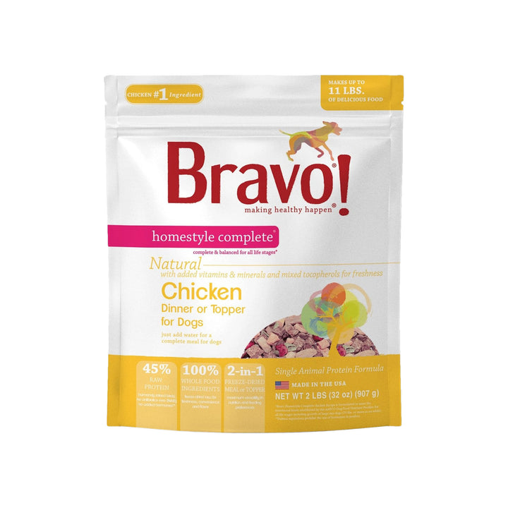 Serving a high-quality, homestyle meal with nutrient rich, raw ingredients is simple with Bravo! Homestyle Complete Freeze-Dried Dog Dinners.