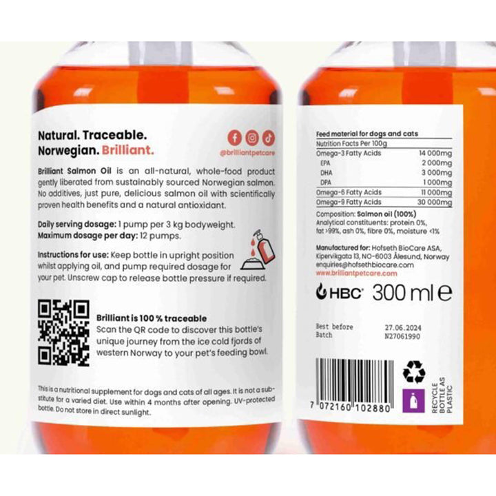 Add Brilliant Salmon Oil for Dogs & Cats to your pet’s routine for straightforward, daily nutritional support.
