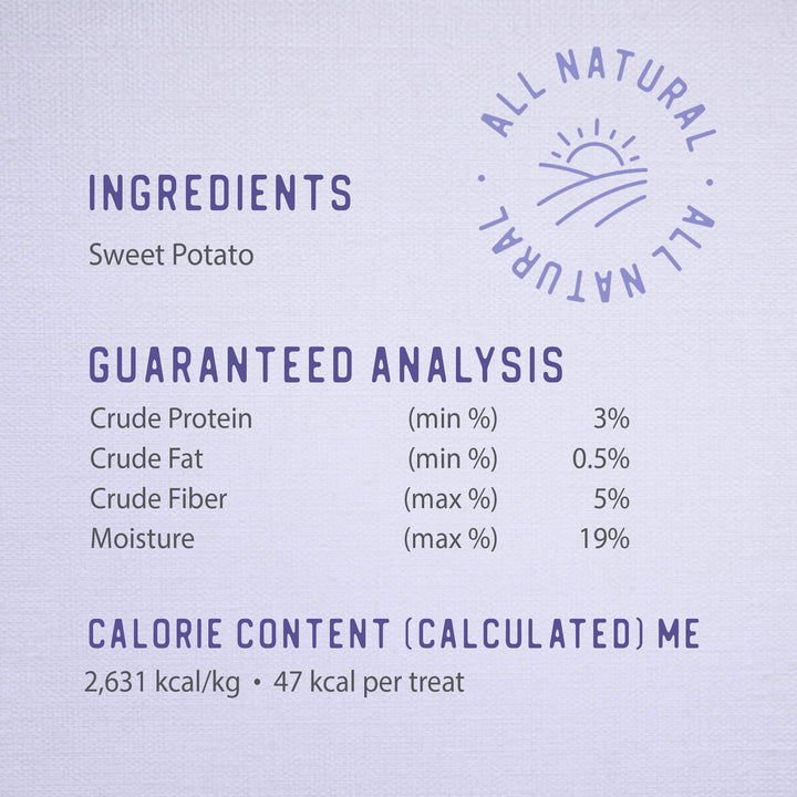 - Single-Ingredient Treat: Made from 100% North American sweet potato.
