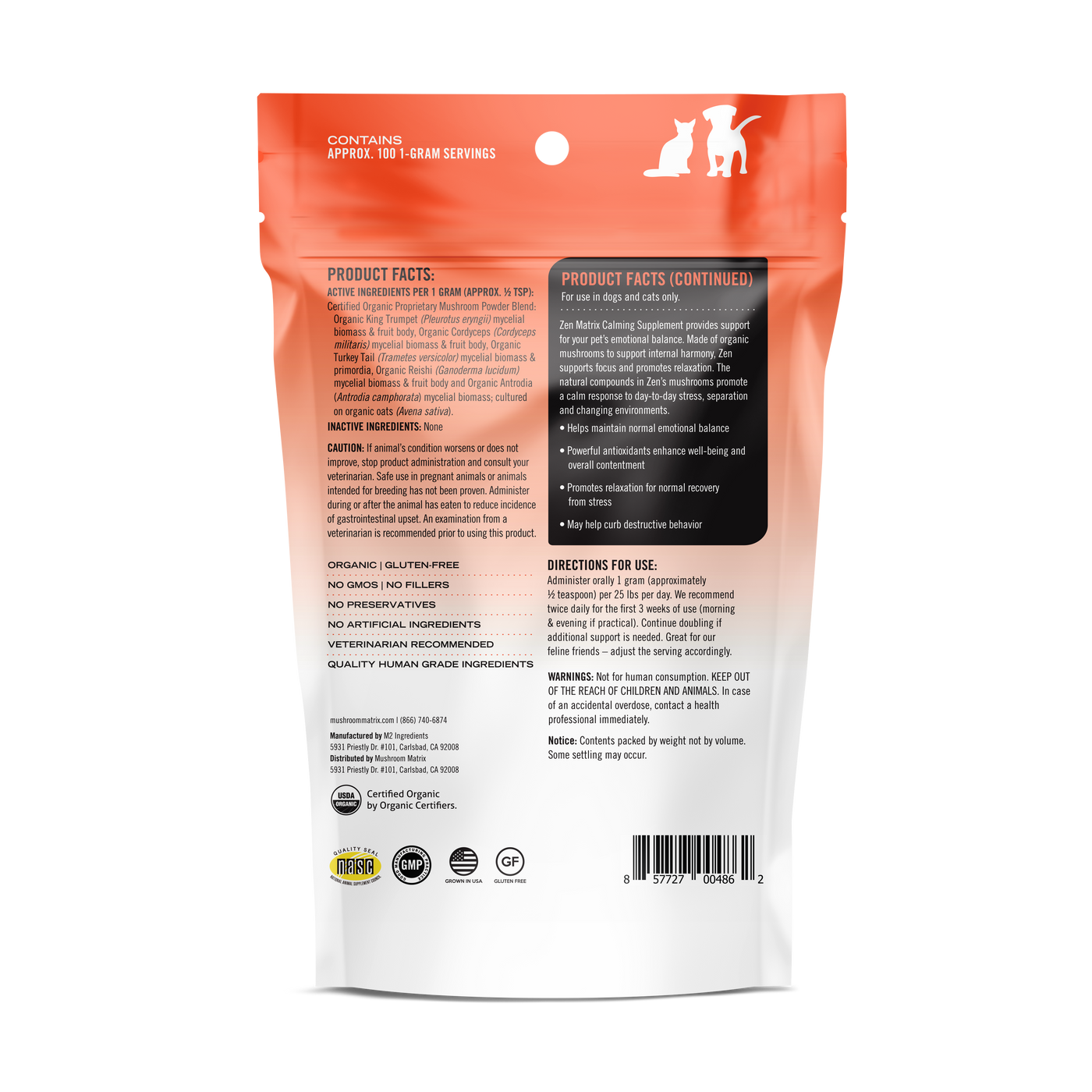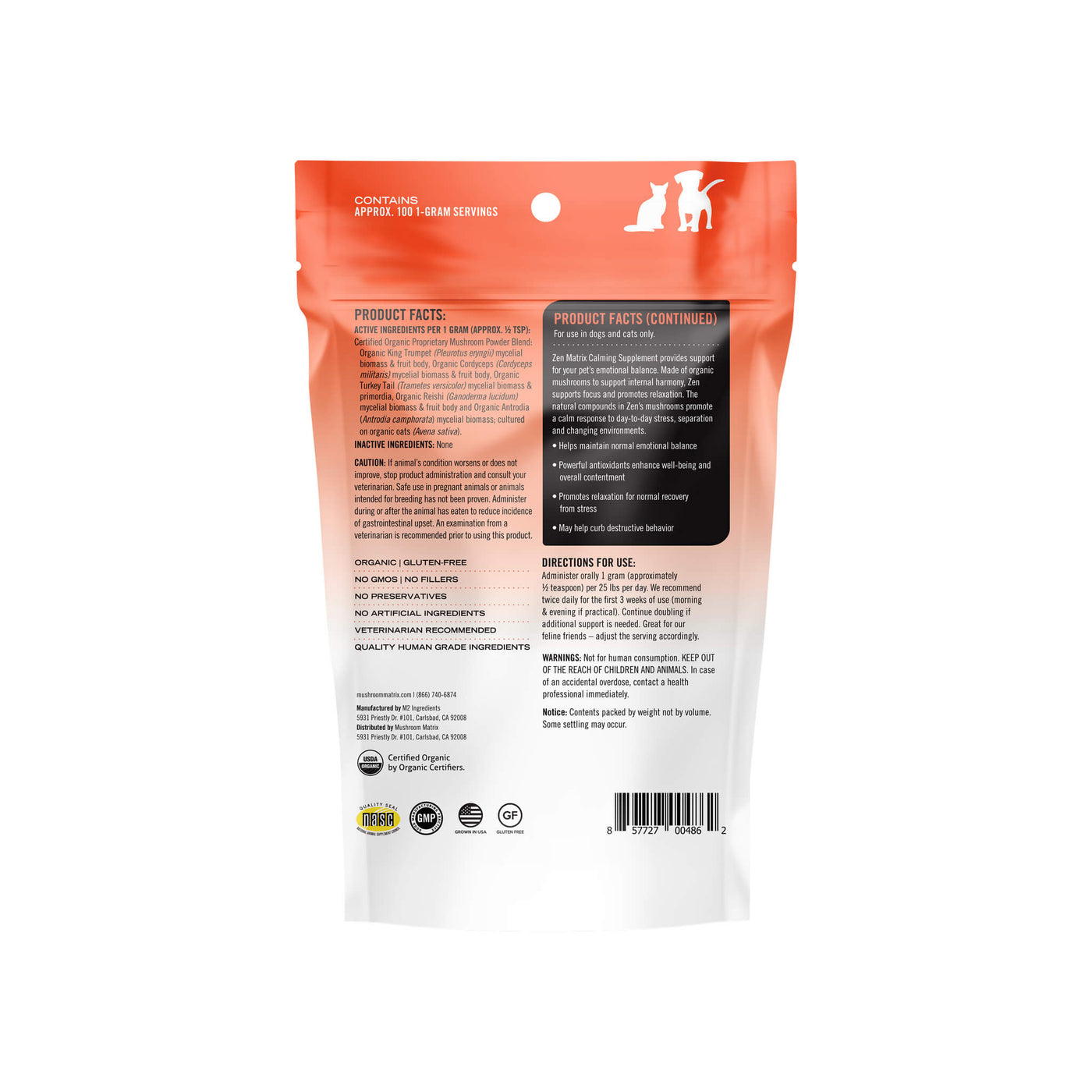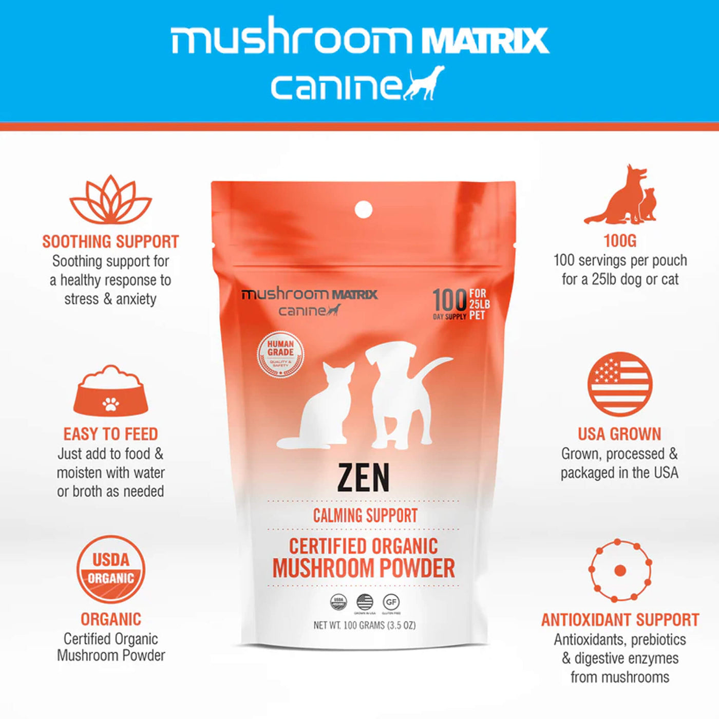 Canine Matrix Zen Organic Mushroom Calming Supplement for Dogs -
