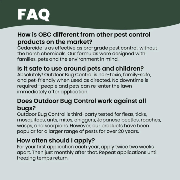 Regular use of CedarCide outdoor bug control keeps your yard pest-free.