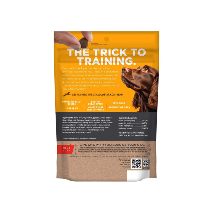 Ideal for puppies or experienced learners alike, Cloud Star Tricky Trainers Dog Treats with Grains are easy to handle and won’t crumble in your pocket. These soft & chewy dog treats for training help keep your dog engaged, whether you're shaping new behaviors or reinforcing the basics.