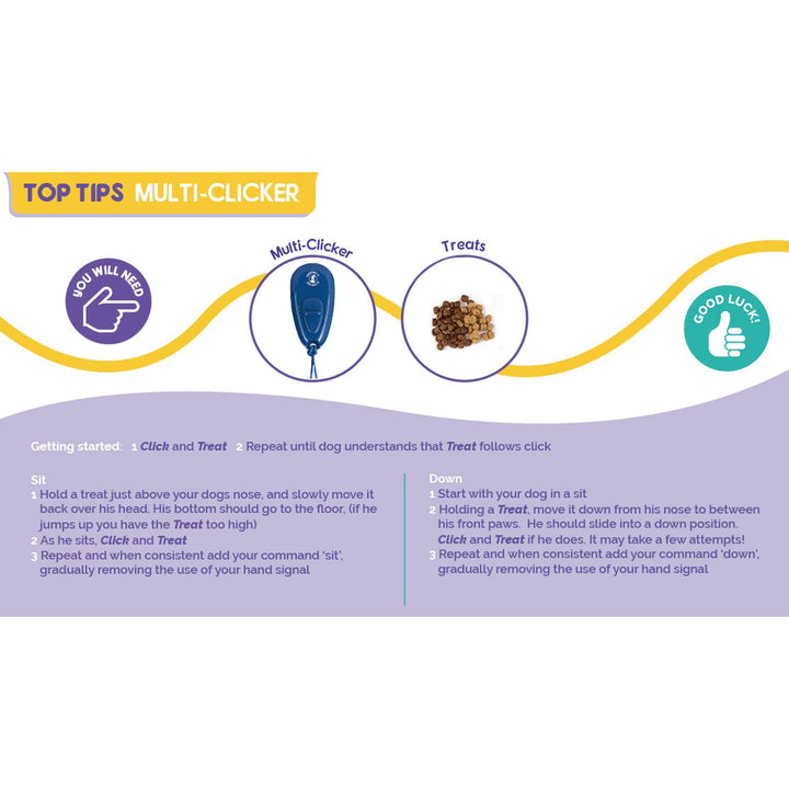 Company of Animals Multi-Clicker gives pet parents a reliable way to reinforce behaviors with consistent sound cues. This adjustable volume dog clicker training aid allows you to tailor the click intensity to different environments and training needs.