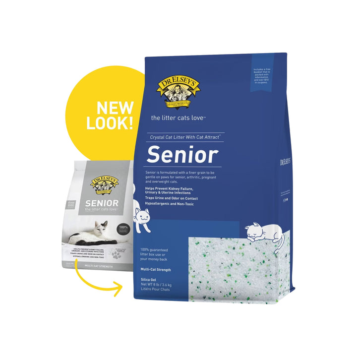 Senior litter absorbs urine on contact and traps it inside the crystal to prevent bacterial growth, thus helping to prevent urinary tract infections. Its small particle size and dust fines also coat and dehydrate cat feces to reduce odor and prevent bacterial growth of E-Coli. E-Coli bacteria grow on feces and along with reduced natural body defenses can lead to kidney failure, urinary and uterine infections. Precious Cat Senior has no organic material such as wheat, pine, corn and paper that can support bacteria and fungal growth, there by helping to prevent urinary infections.