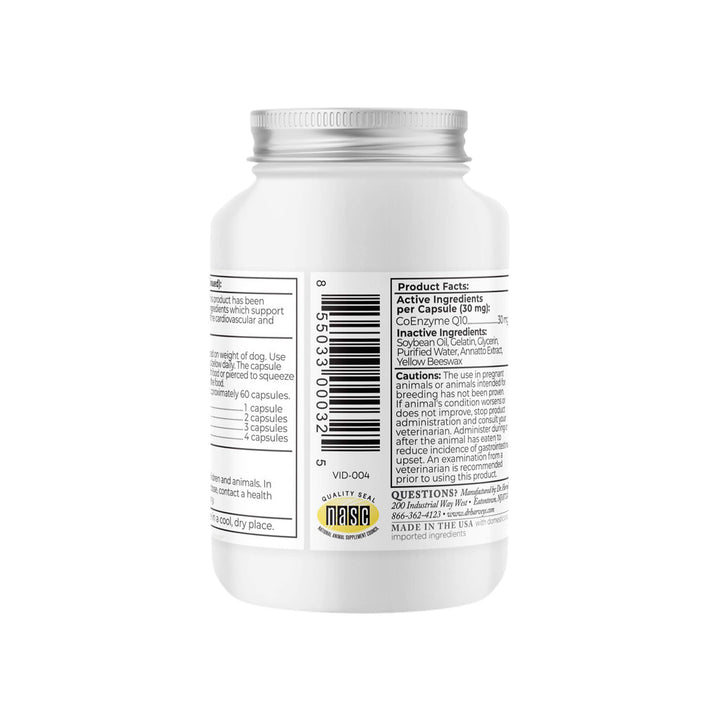 Dr. Harvey's Coenzyme Q10 Cardiovascular Health Antioxidant Supplement for Dogs & Cats is a powerful cardio support supplement designed for pets with heart issues or aging animals typically over the age of 7. Coenzyme Q10, a compound naturally produced in the body, has been shown to support the immune system, maintain cellular health, and improve cardiovascular function through clinical trials.