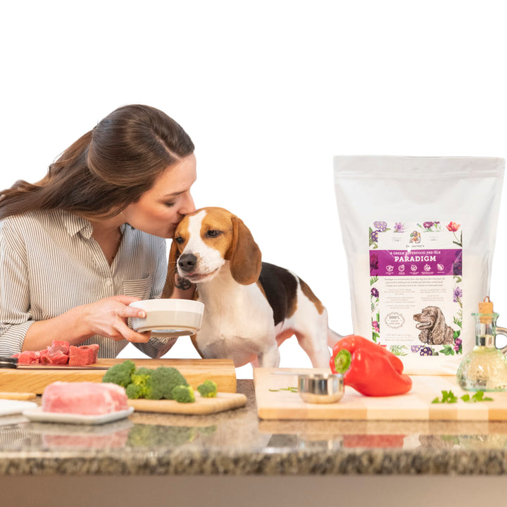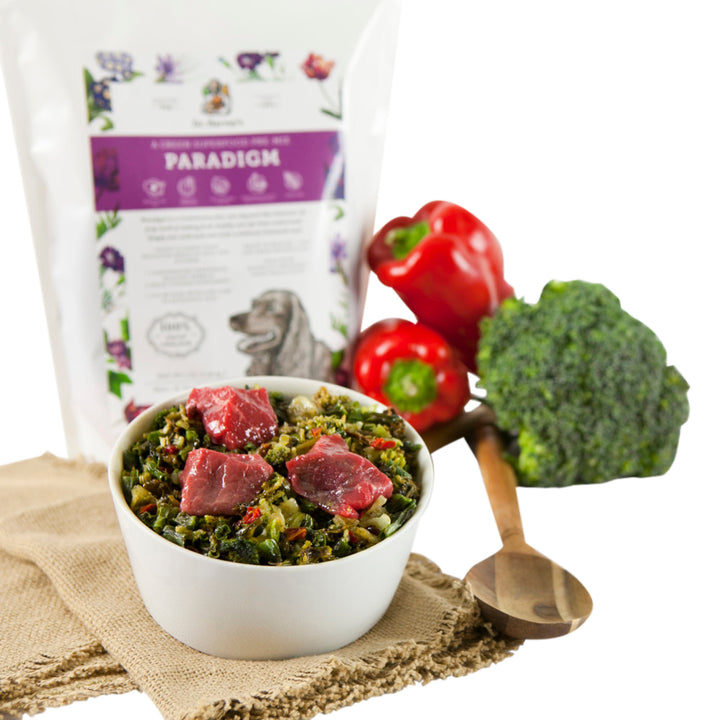 Paradigm is a revolutionary green food pre-mix designed for a low-carb diet, ideal for dogs with specific health needs or as a nutritious maintenance diet. Made with 6 dehydrated vegetables, healthy herbs, and a multi-vitamin supplement, Paradigm is free from grains, starchy vegetables, preservatives, and chemicals. Preparing fresh, balanced meals is quick and easy—just add hot water, your choice of protein, and oil for a healthy, homemade meal in minutes. Dr. Harvey’s is committed to providing safe, natural, and chemical-free nutrition for your dog’s health and well-being