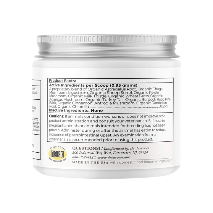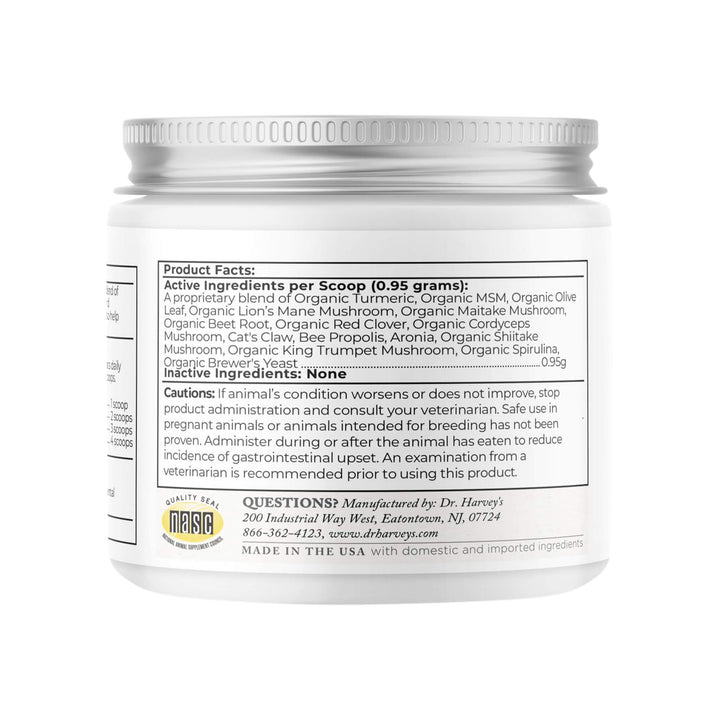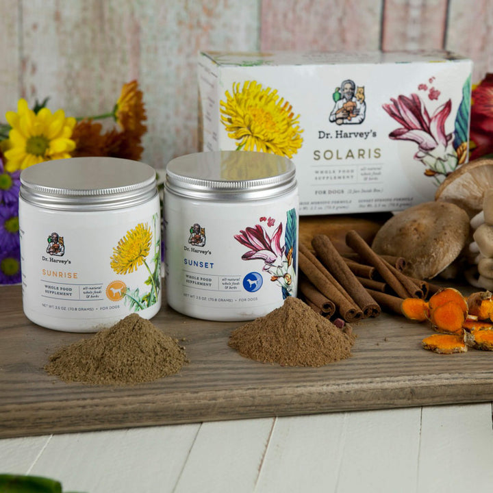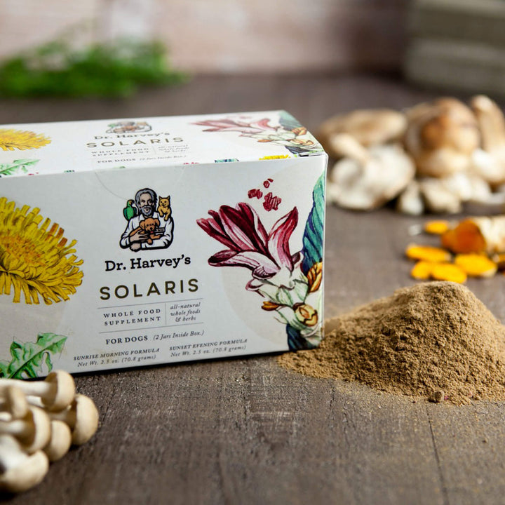Dr. Harvey’s Solaris Morning & Evening Organic Immune Support Supplement for Dogs provides comprehensive immune support with a twice-daily whole food supplement. This powerful healing formula features Organic Healing Mushrooms that help balance the body's immune system response, and Organic Astragalus, used in Traditional Chinese Medicine to boost white blood cell count, produce more antibodies, and strengthen antiviral immunity.