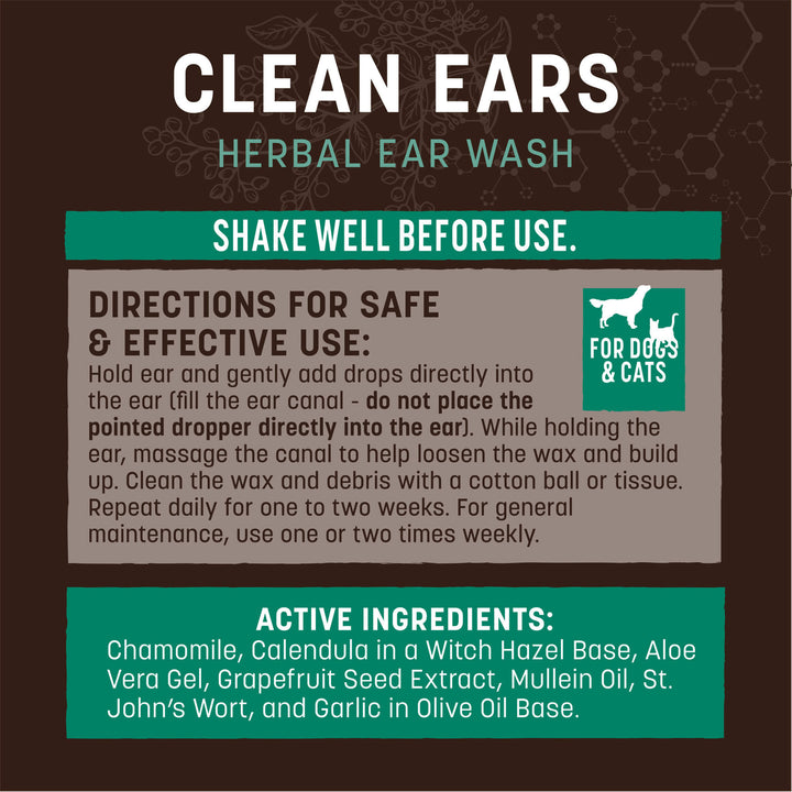 Earth Animal Herbal Topical Remedies Clean Ears Wash for Dogs offers a better way to heal with a gentle herbal cleanser that supports normal ear function and health. It helps to maintain normal ear wax levels and keep ears clean.