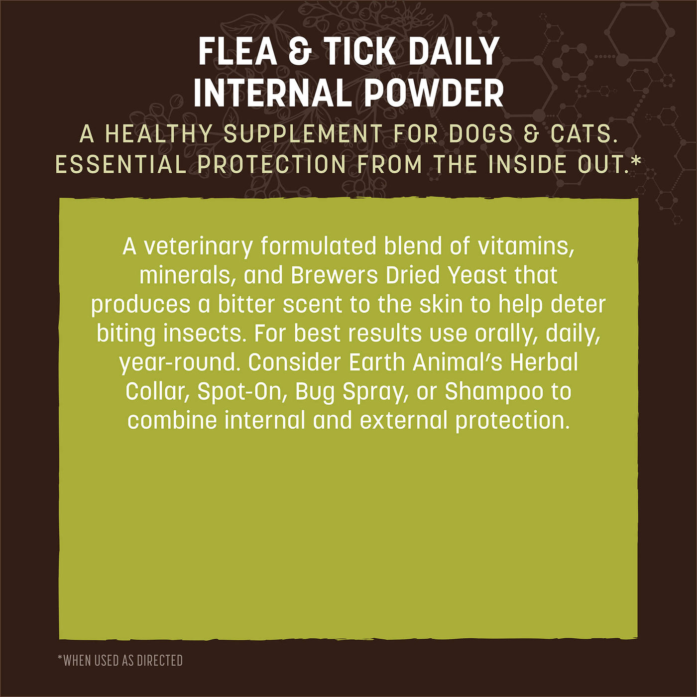 Earth Animal Daily Internal Powder is a simple, safe, and effective alternative method to protecting your pet from fleas, ticks, and mosquitoes.