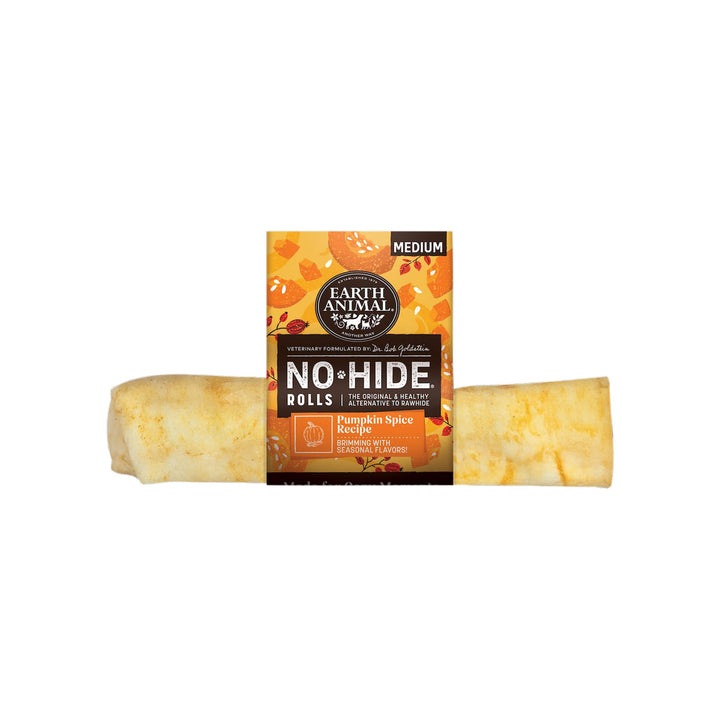 Celebrate the season with Earth Animal No Hide Pumpkin Spice Seasonal Rolls—chewable joy in every festive bite.