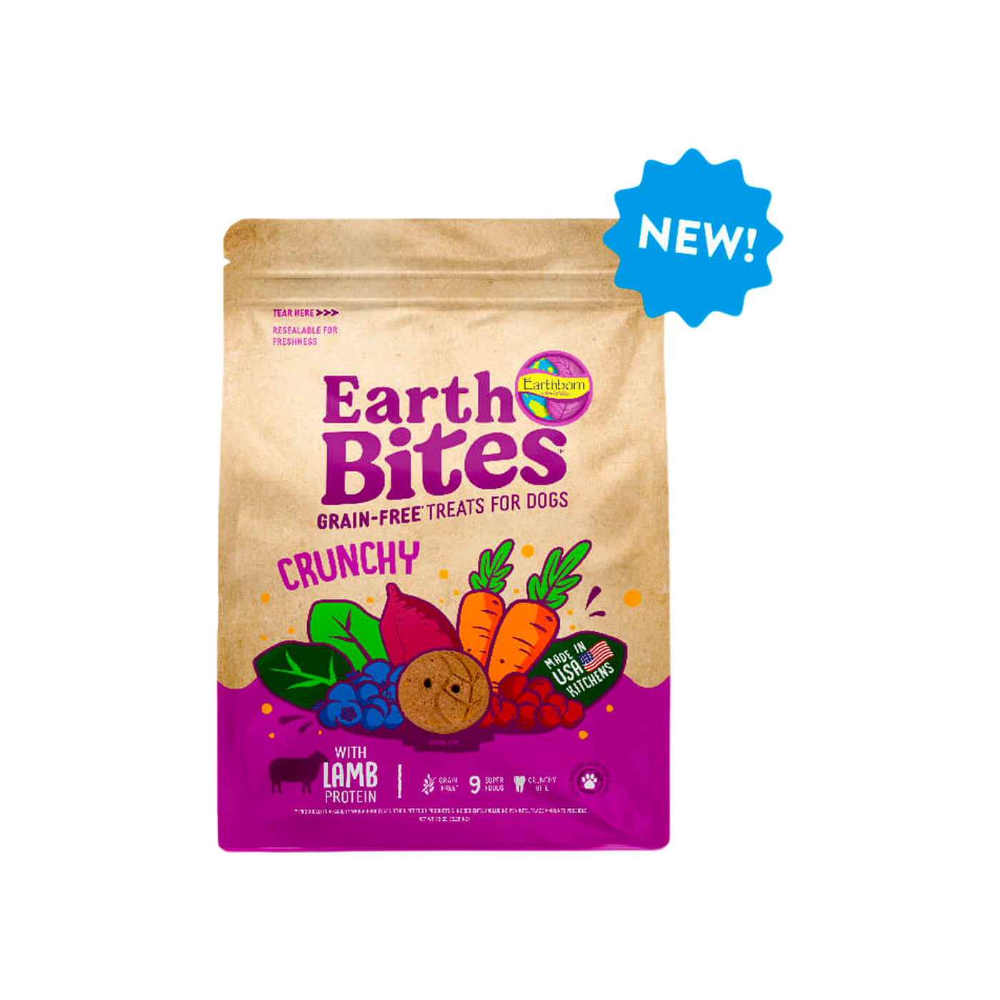 Give your pup a satisfying crunch with EarthBites dog treats, a wholesome snack made with high-quality proteins, fruits, and vegetables. These grain-free crunchy dog treats are crafted without artificial preservatives, fillers, or by-products, offering a natural and nutritious way to reward your furry friend. Whether for training or daily treating, their crunchy texture helps support dental health while delivering a delicious, protein-packed bite. Discover the full selection of Earthborn dog treats and give your dog a wholesome reward they'll crave.