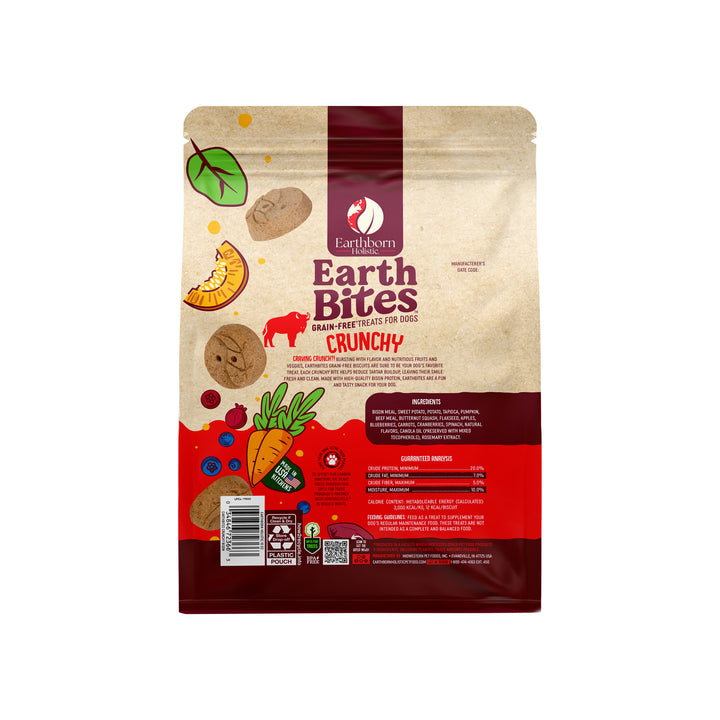 Give your pup a satisfying crunch with EarthBites dog treats, a wholesome snack made with high-quality proteins, fruits, and vegetables. These grain-free crunchy dog treats are crafted without artificial preservatives, fillers, or by-products, offering a natural and nutritious way to reward your furry friend. Whether for training or daily treating, their crunchy texture helps support dental health while delivering a delicious, protein-packed bite. Discover the full selection of Earthborn dog treats and give your dog a wholesome reward they'll crave.