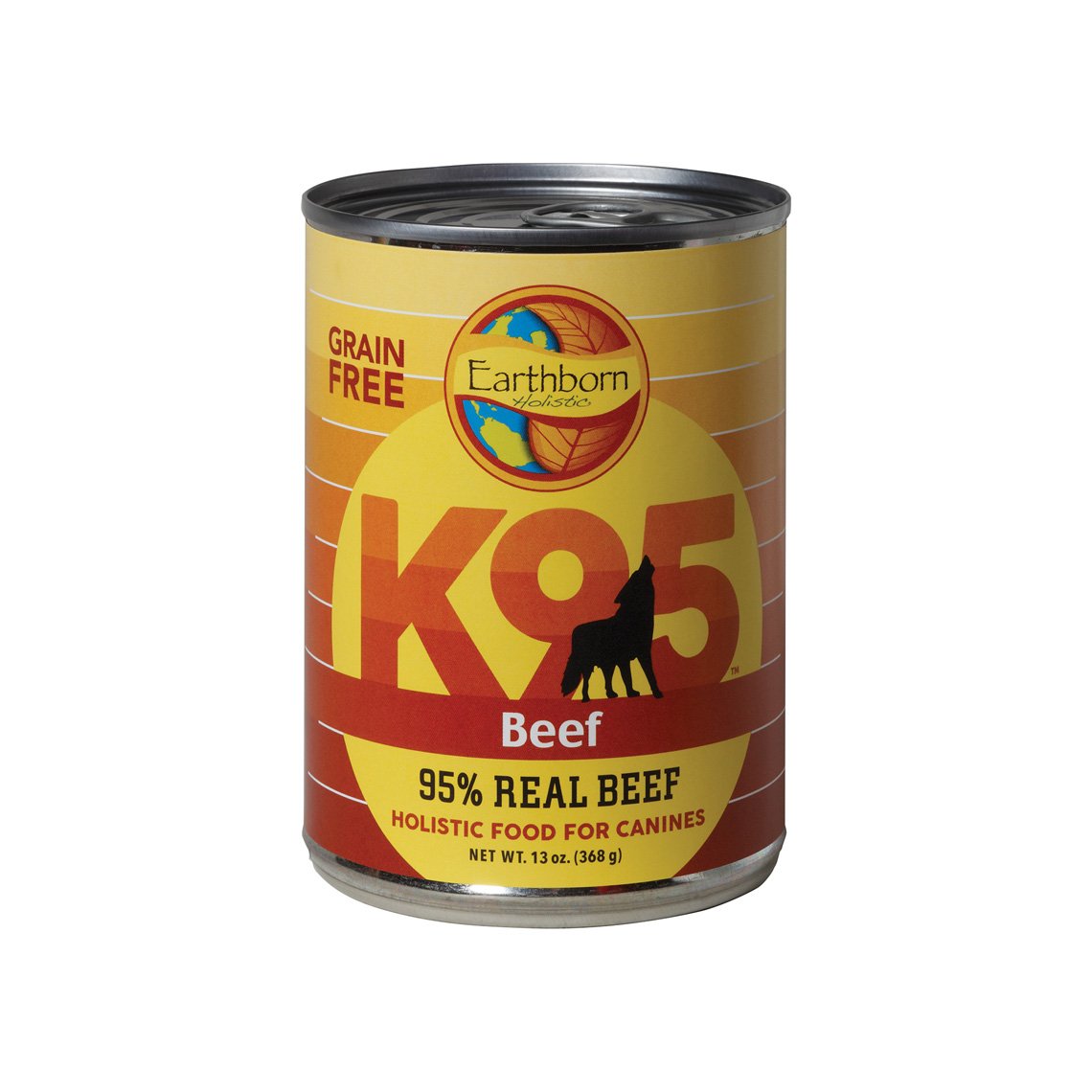 Earthborn Holistic K95 Canned Dog Food features recipes made with 95% real meat and only 5% farm raised fruits and vegetables. Each recipe is grain free, gluten free and rich in nutrients.