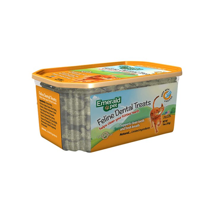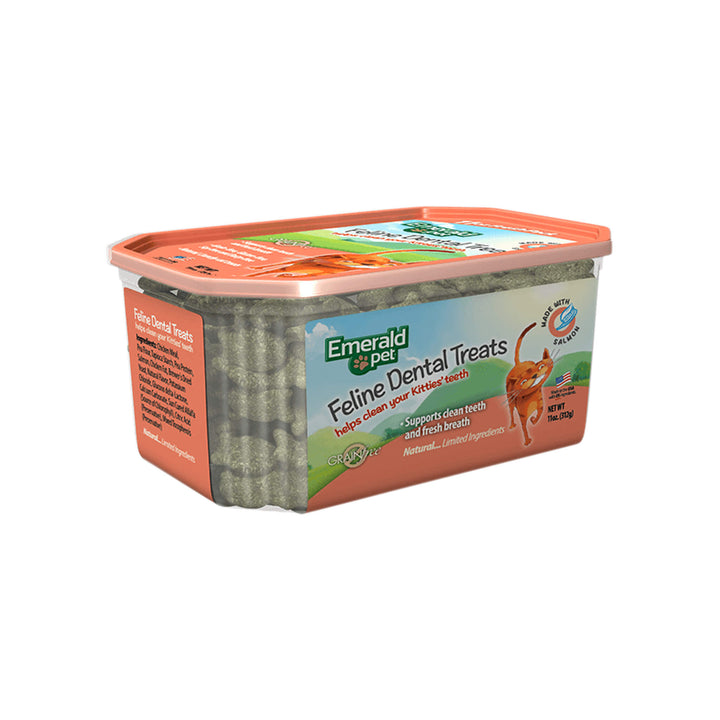 Finally! Feline favored, deliciously flavored Emerald Pet Crunchy Dental Treats!