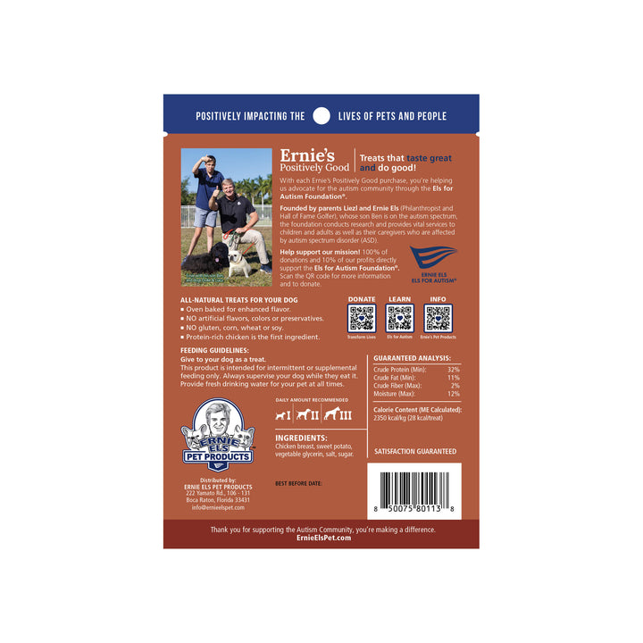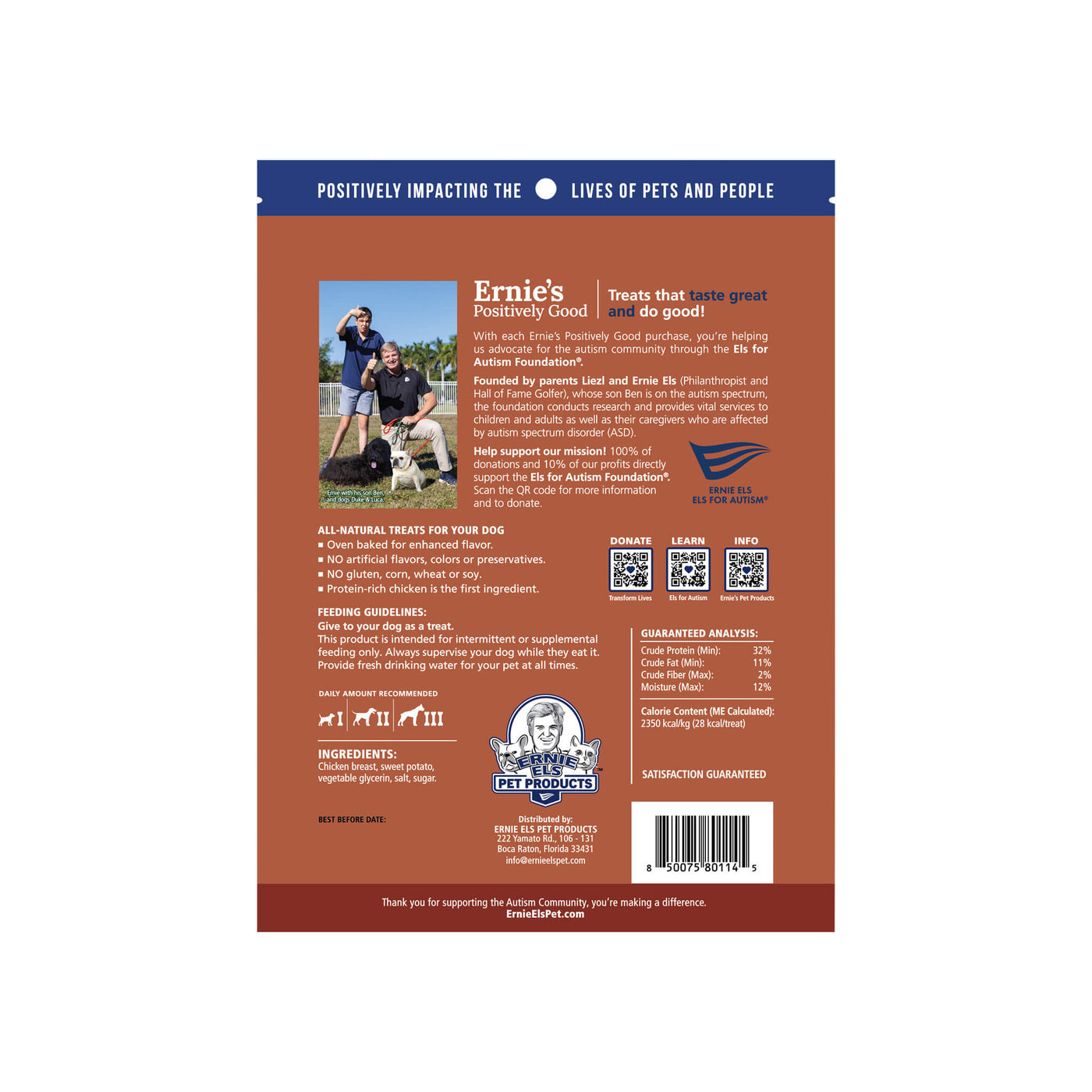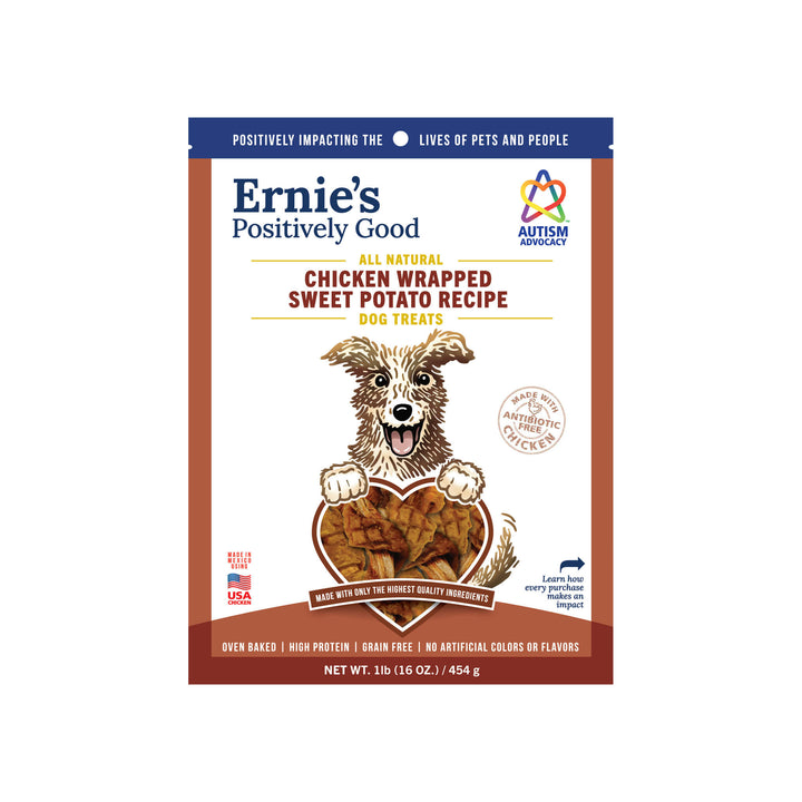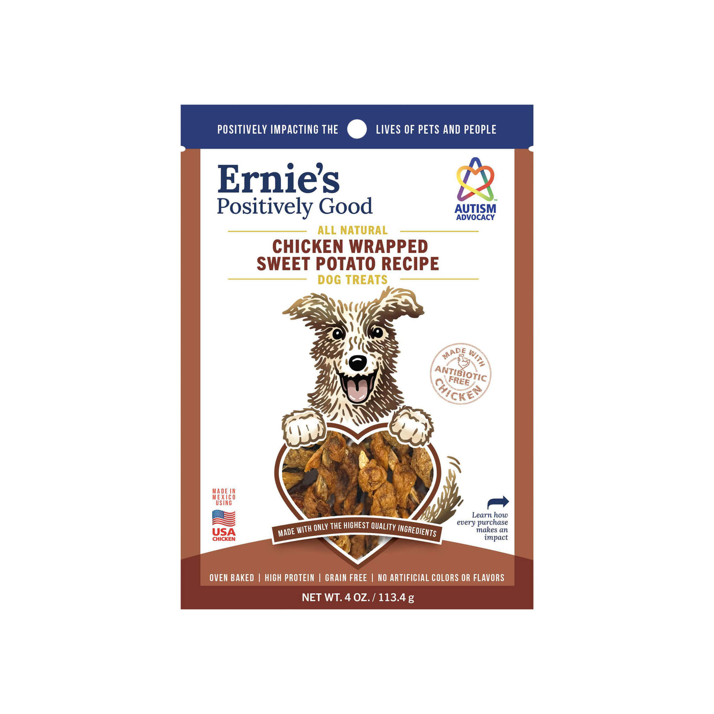 Treat your dog to Ernie’s Positively Good Chicken Wrapped Sweet Potato Dog Treats—crafted for delicious, protein-rich snacking with real, natural ingredients.
