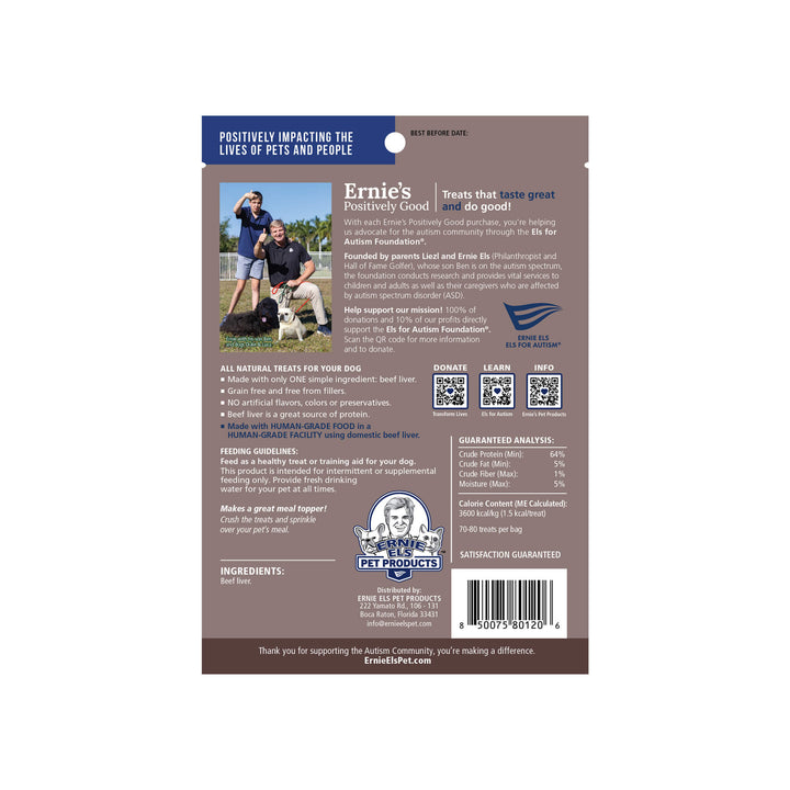 Ernie’s Positively Good Freeze-Dried Dog Treats deliver clean, natural nutrition in the form of high-value liver treats for dogs. Each bite offers rich flavor and pure protein to support healthy energy and rewarding training sessions.