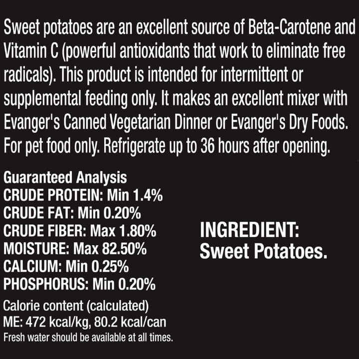 Enhance your pet’s diet with Evanger's Canned Sweet Potato for Dogs & Cats—a natural, wholesome boost to their daily meals!