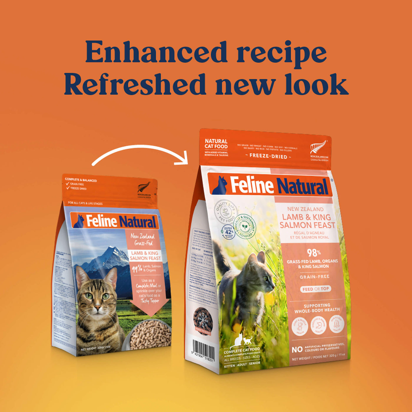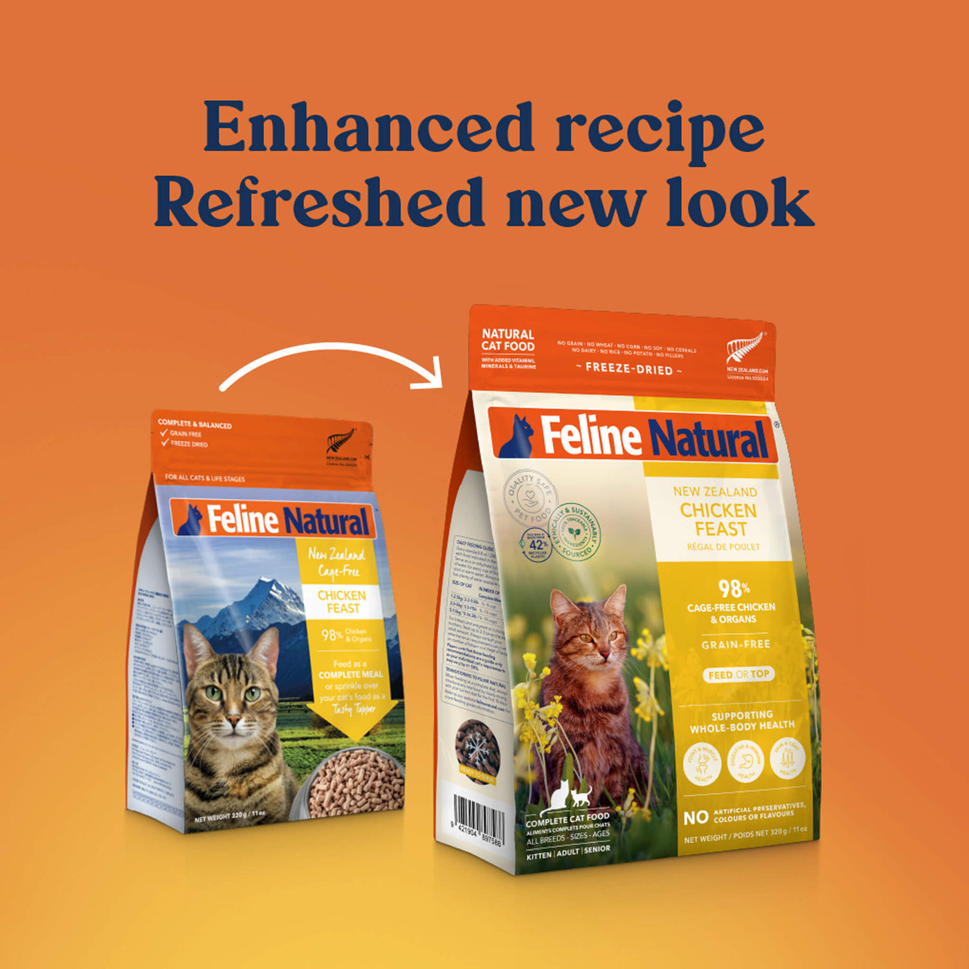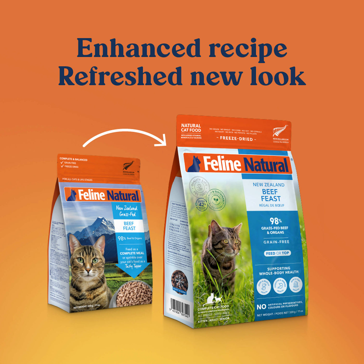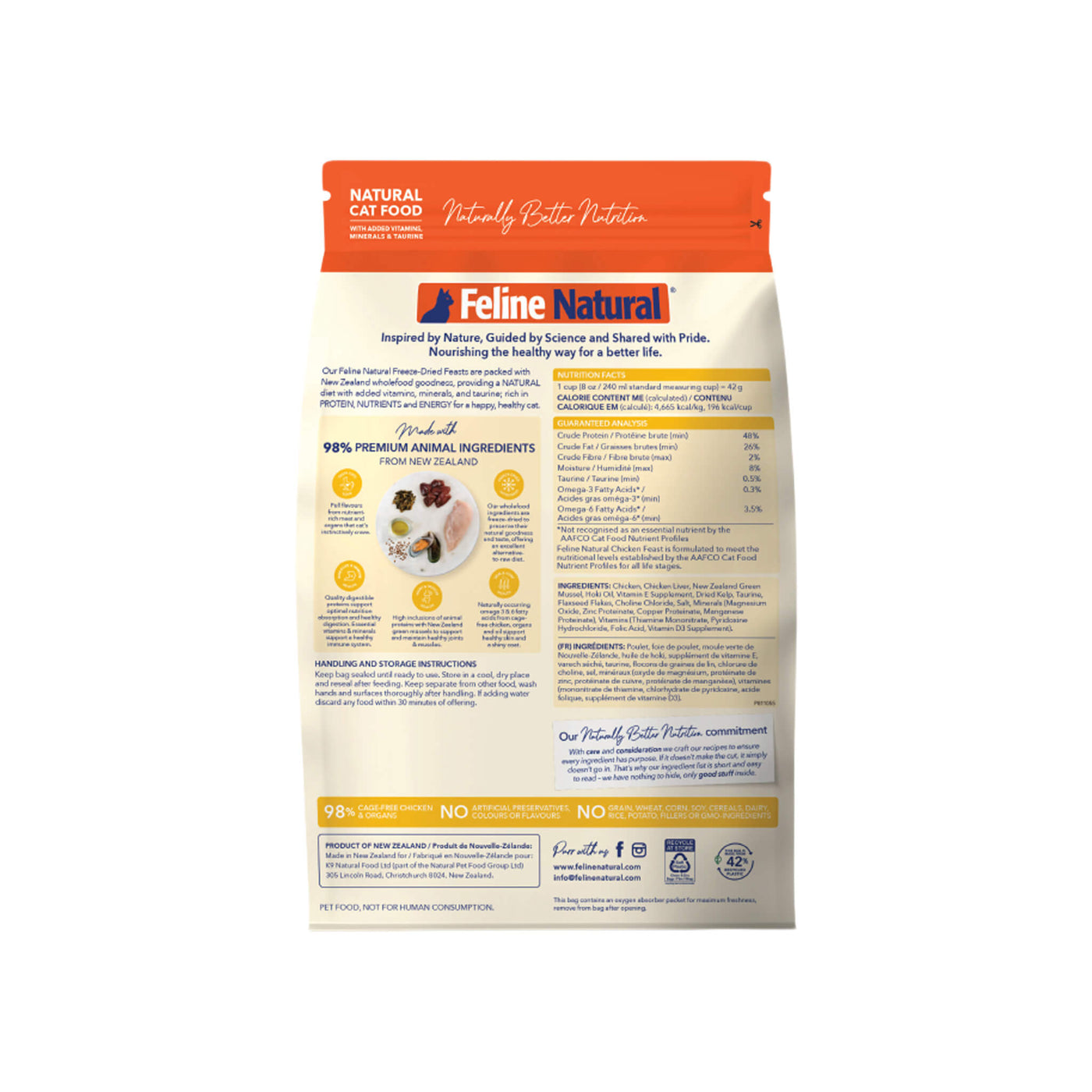 Give your cat the high-protein, grain-free nutrition they crave with Feline Natural Cat Food. Made in New Zealand with ethically sourced meats, this freeze-dried formula locks in essential nutrients for a species-appropriate diet. As a premium freeze-dried cat food, it’s rich in taurine to support heart and eye health while remaining free from grains, soy, corn, and fillers. Serve as a complete meal or a nutrient-dense topper to keep your feline thriving. Explore the full range of Feline Natural products and give your cat the nutrition they were born to thrive on.