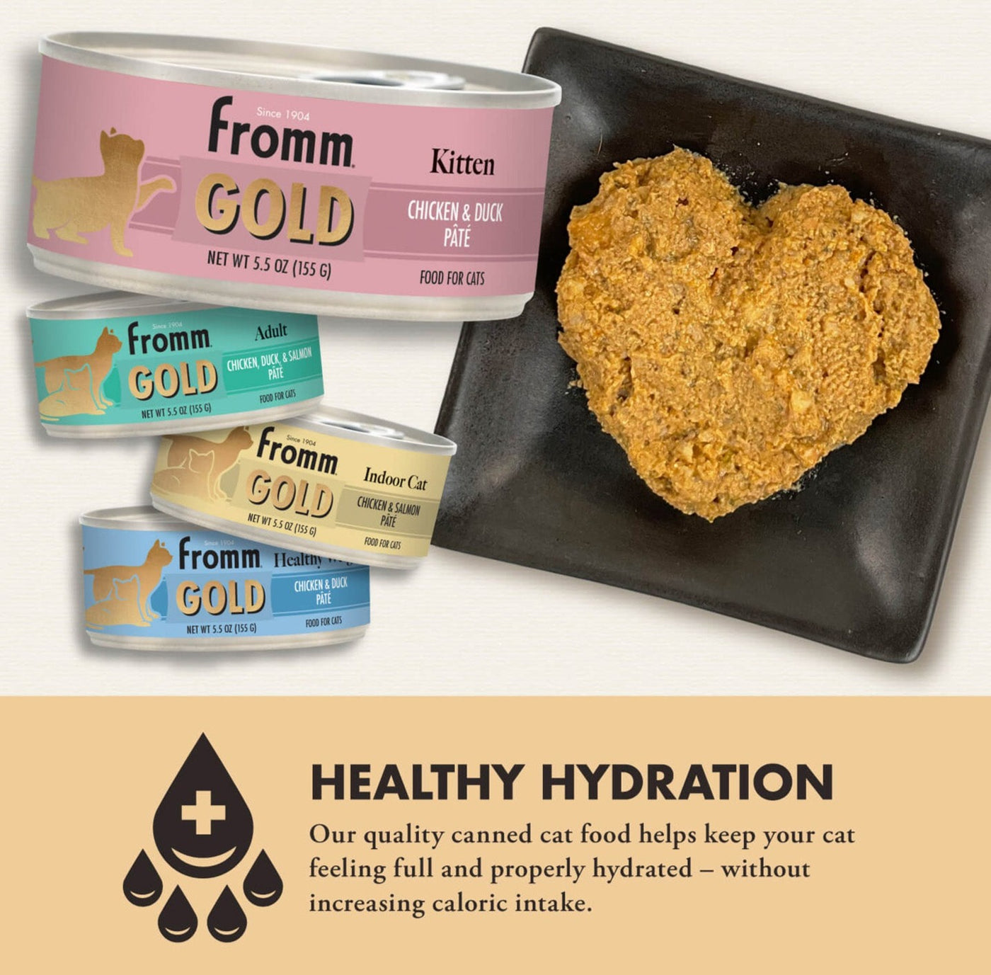 Fromm Gold Wet Cat Food offers a delicious, nutritious meal made with high-quality proteins and wholesome ingredients. It complements Fromm Gold dry formulas, providing complete and balanced nutrition for active cats.