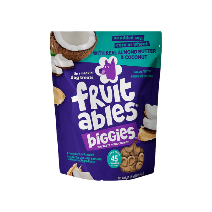 Reward your pup with Fruitables Biggies Dog Treats—big flavor, big crunch, and naturally good ingredients in every bag.