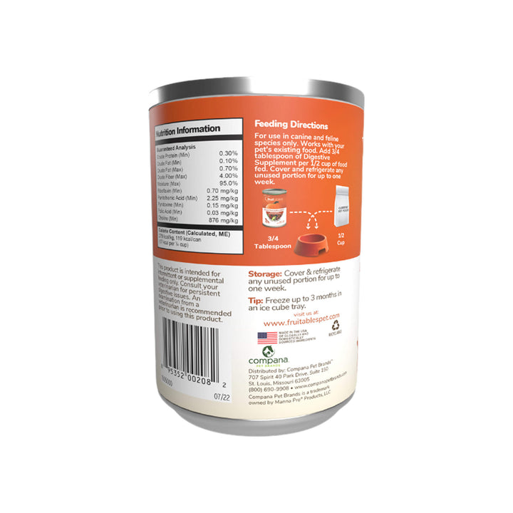 Support your pet’s digestive health with Fruitables Digestive Supplement. This pumpkin-based formula is designed to help maintain regularity and soothe upset stomachs in dogs and cats. Packed with natural fiber, antioxidants, and essential nutrients, it provides gentle, effective digestive support without artificial additives. Perfect for pets with sensitive stomachs or dietary changes, Fruitables Digestive Supplement is a wholesome way to promote healthy digestion. Browse our digestive health products to find the best options for your pet’s well-being.