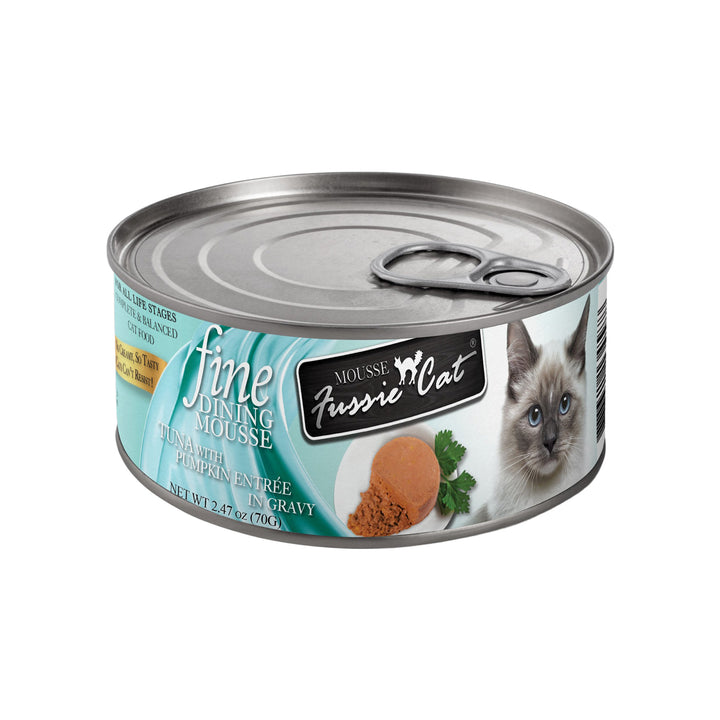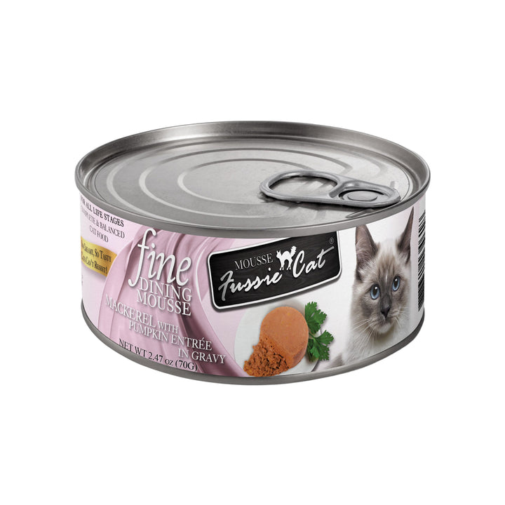 Fussie Cat Fine Dining Mousse Wet Cat Food With Pumpkin is a luxurious, silky-smooth entrée thoughtfully crafted to satisfy the refined tastes of even the most particular cats. This grain-free recipe features a light mousse texture that’s easy to eat and highly palatable, making mealtime a delightful experience for cats of all life stages.