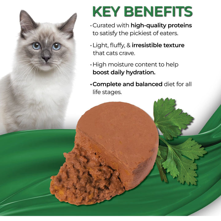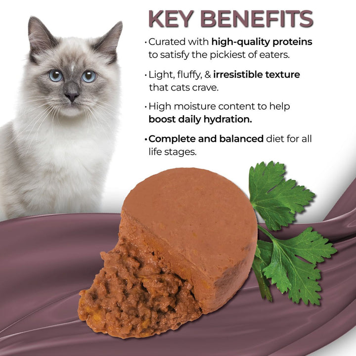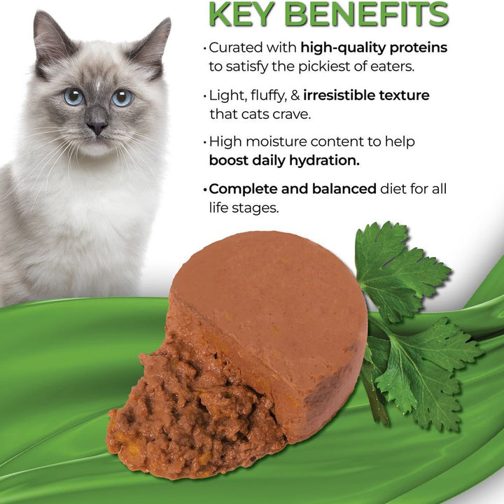 Pumpkin, a nutrient-rich superfood, offers natural fiber to aid digestion and essential antioxidants to support immune function. Combined with high-quality proteins, this formula delivers complete and balanced nutrition in every bite. The high moisture content supports healthy hydration—especially important for cats who don’t drink enough water on their own. Whether used as a full meal or a topper, this recipe nourishes from the inside out while keeping your feline feeling full and satisfied.