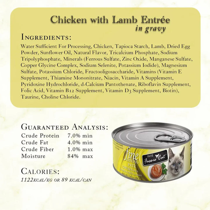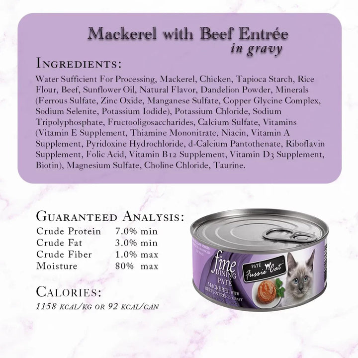 Fussie Cat Fine Dining Pate Wet Cat Food delivers gourmet flavor in a smooth, velvety texture that even the pickiest cats will love. Carefully crafted with high-quality ingredients, each serving provides a complete and balanced diet for cats of all life stages, helping to support their health from kittenhood through their golden years.