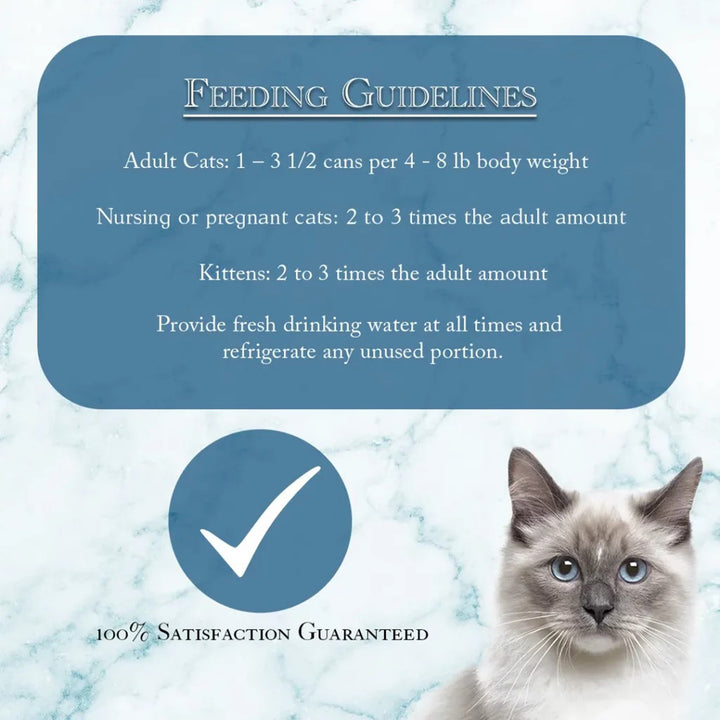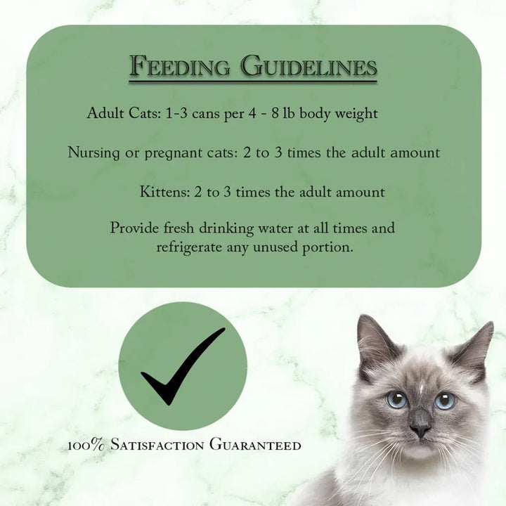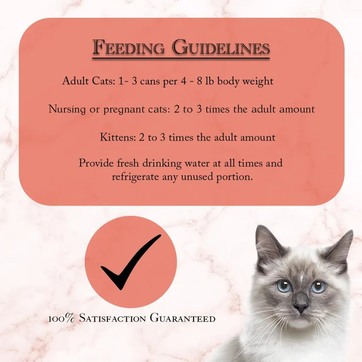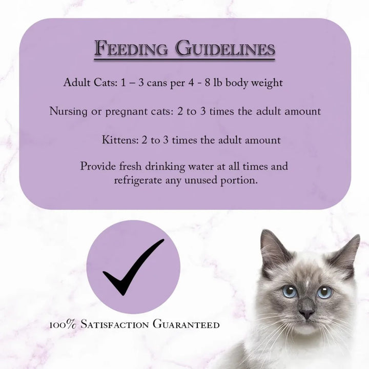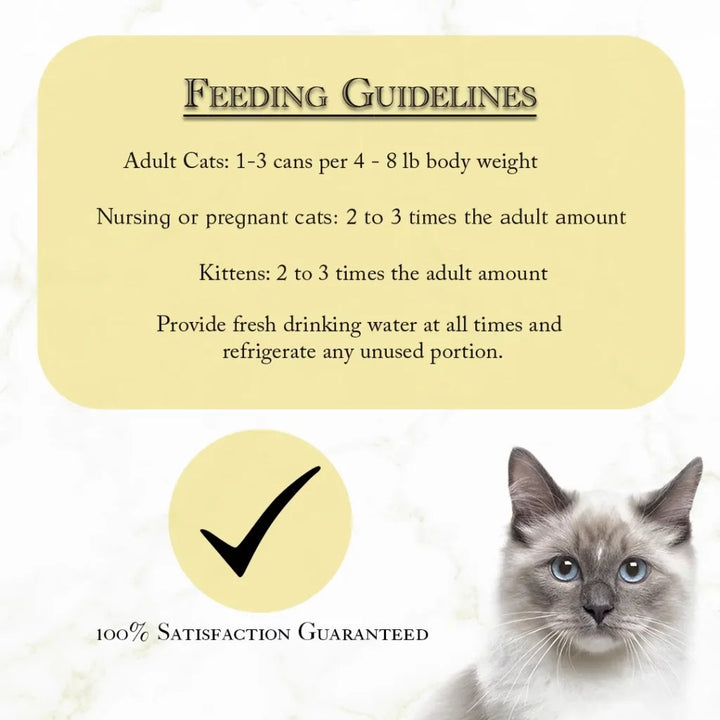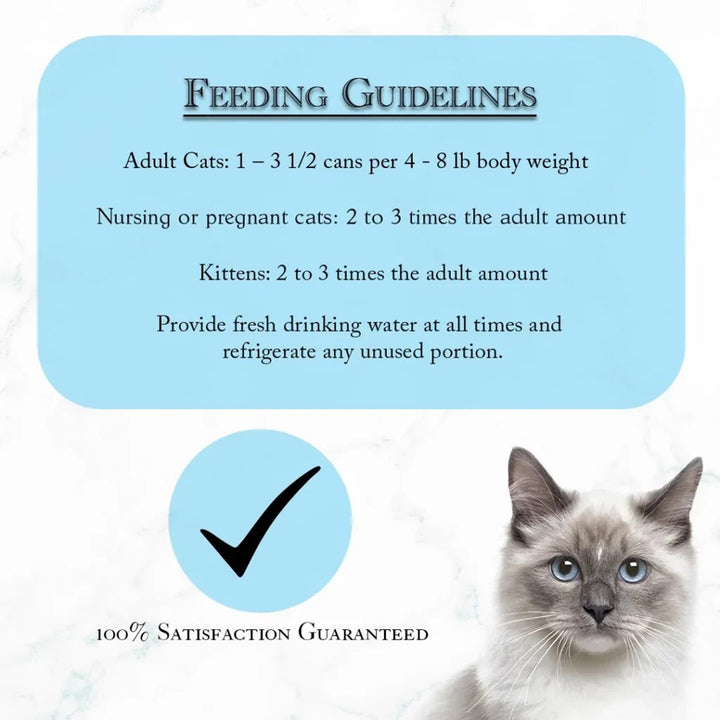 For Adult Cats feed 1 ¼ – 2 ¼ cans per 4-8lb body weight.
