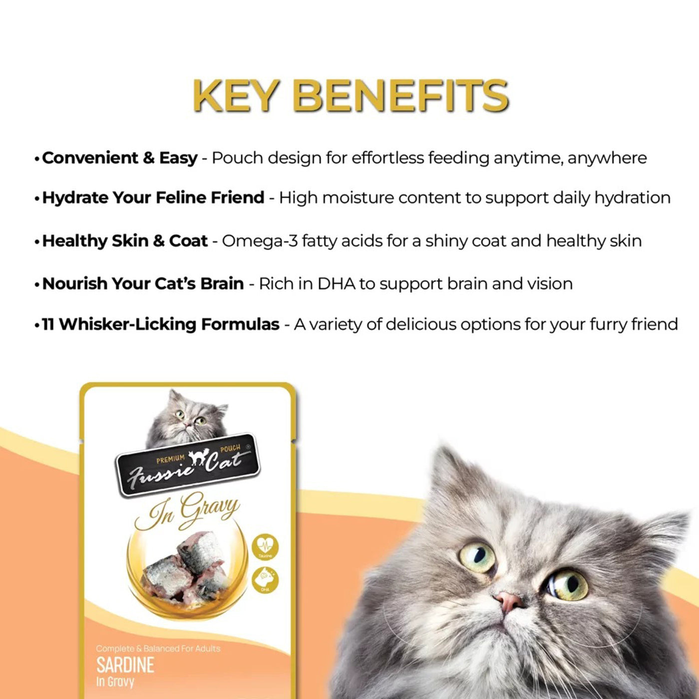 Try Fussie Cat Premium Pouch in Gravy Wet Cat Food today!