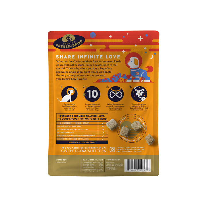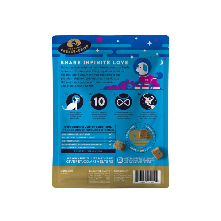 Chunky, freeze-dried beef bites offering a bold, savory chew—great as high-value rewards or adventurous treats that feel out of this world.Country of origin: USAManufacturer: GivePet - Ingredients