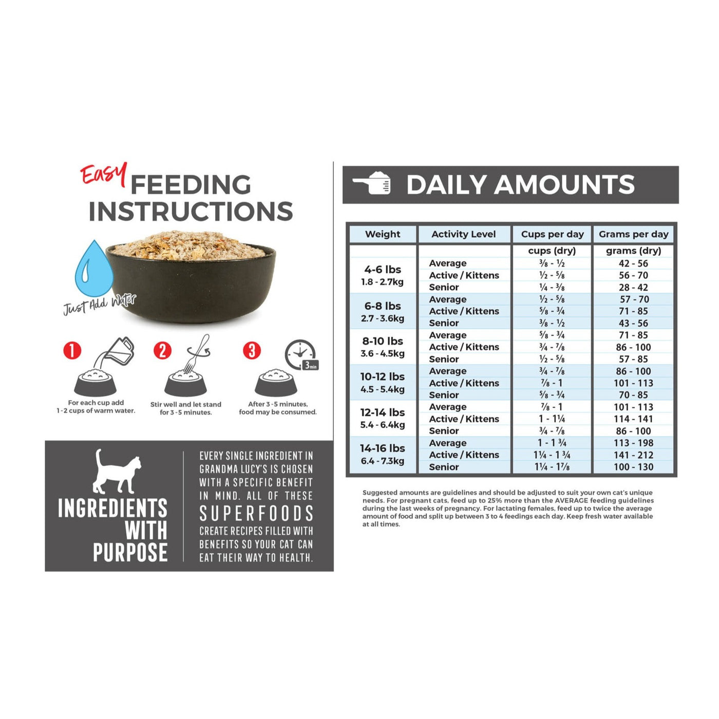 Grandma Lucy's Artisan Freeze Dried Cat Food brings the warmth and aroma of a home-cooked meal straight to your furry friend's bowl. Crafted with the finest whole food ingredients and prepared in small batches in a family-owned kitchen in California, Artisan embodies the essence of quality and care. This grain-free recipe offers a delightful balance of digestibility and palatability, making it an ideal choice for pets with food sensitivities or discerning palates. With its all-natural ingredients and savory stew-like texture, this recipe is sure to earn your pet's affection with every bite, while the simple preparation process ensures you can serve up a gourmet meal in moments.