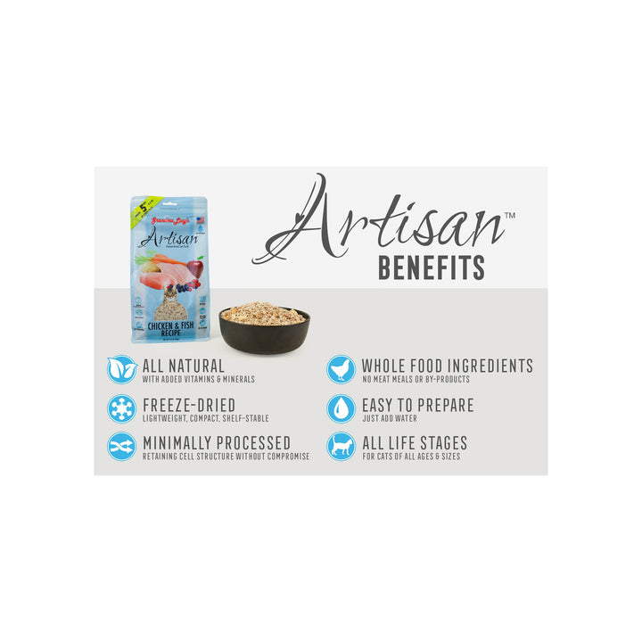Grandma Lucy's Artisan Freeze Dried Cat Food brings the warmth and aroma of a home-cooked meal straight to your furry friend's bowl. Crafted with the finest whole food ingredients and prepared in small batches in a family-owned kitchen in California, Artisan embodies the essence of quality and care. This grain-free recipe offers a delightful balance of digestibility and palatability, making it an ideal choice for pets with food sensitivities or discerning palates. With its all-natural ingredients and savory stew-like texture, this recipe is sure to earn your pet's affection with every bite, while the simple preparation process ensures you can serve up a gourmet meal in moments.