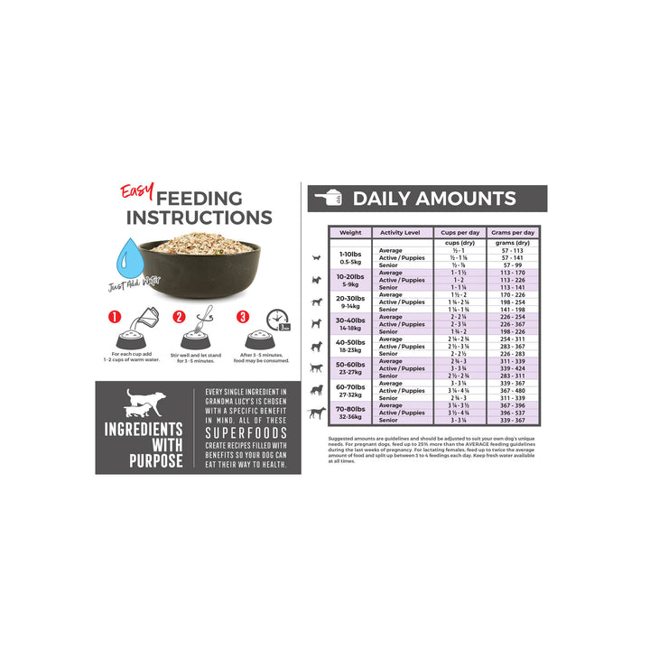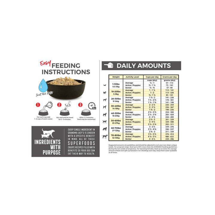 At Grandma Lucy’s their goal has always been a basic one, to make pure and simple pet products. They do things the same way you would if you had the time to cook for your pet. They take care to use only human-quality, all-natural ingredients and nothing else. Since 1999, Grandma Lucy's has maintained a reputation for making only the best pet food. This is why when you choose Grandma Lucy's Freeze Dried, Grain Free Artisan Pet food, you know you are making the right choice for your pet.